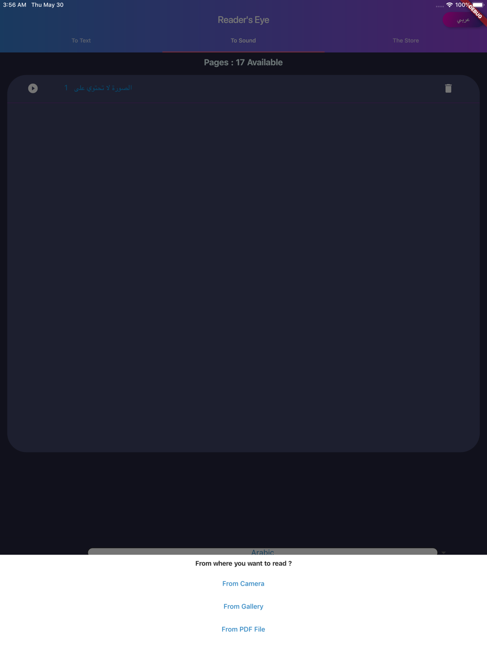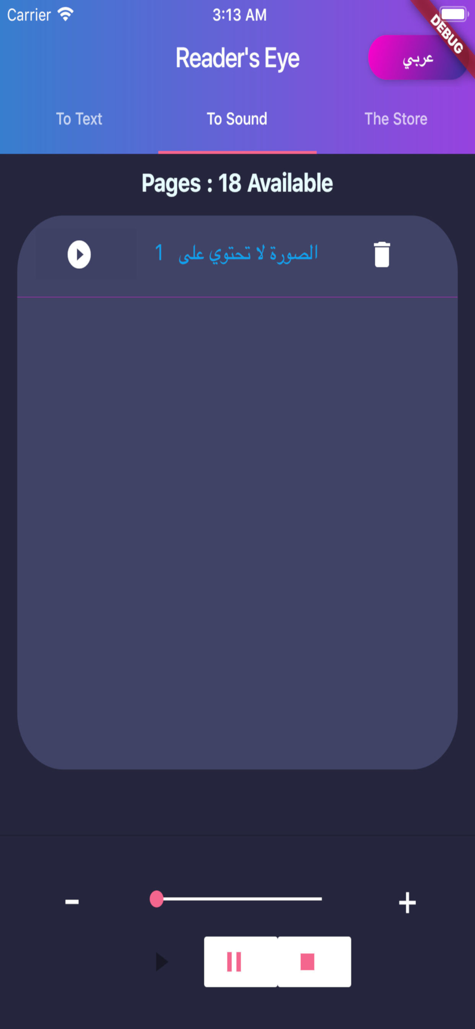 You can share text files to other applications. When playing audio files you can control the speed of the reader through the speed indicator.