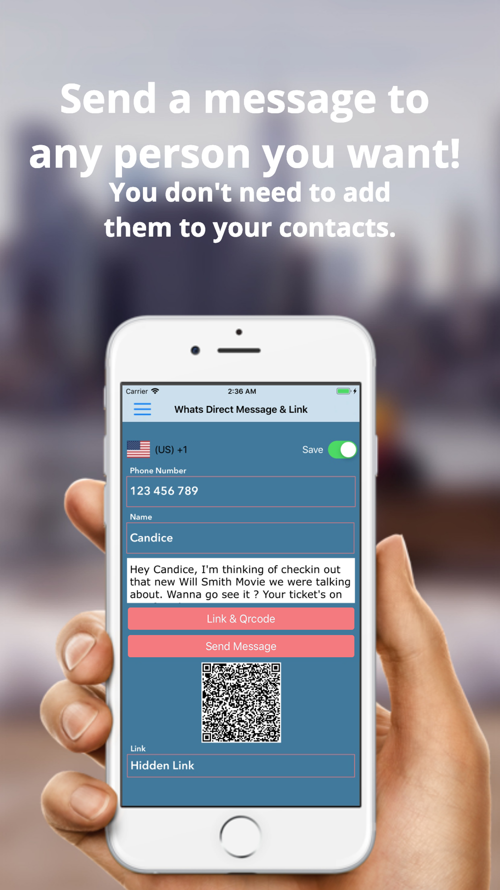 You can send message and media to any person you want directly in WhatsApp without saving the contact. Just directly add the number and click "Send Message". That's it! Simple and clean. You can save the message(s) optionally. Do you need to send to a recently saved contact, yes you can easily just click “Message History” and swipe right.