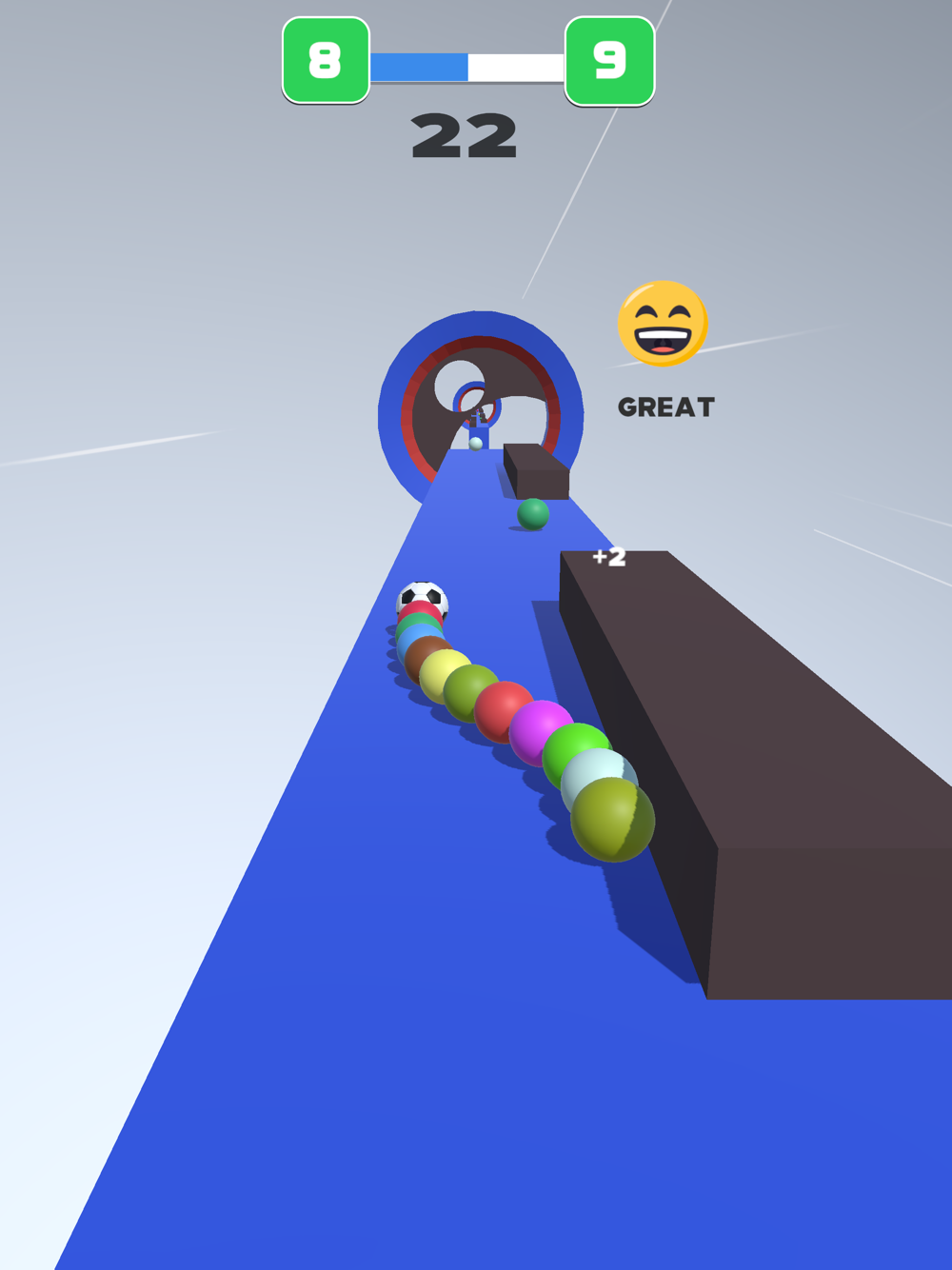 Tap to maneuver through a 3D world of Obstacles. Collect additional balls and make the biggest snake ever! Pass through Collector Gates with specefic required number of balls and get bonus.