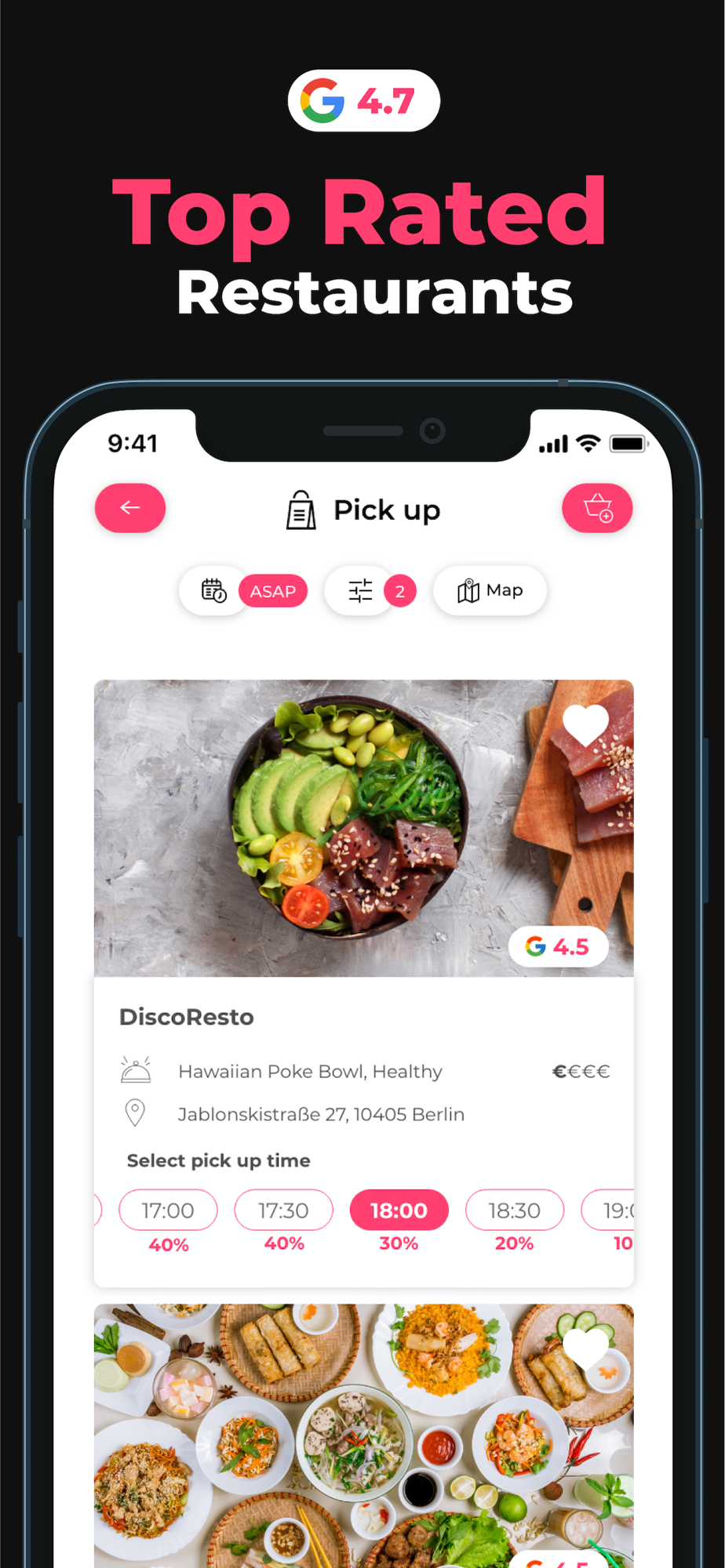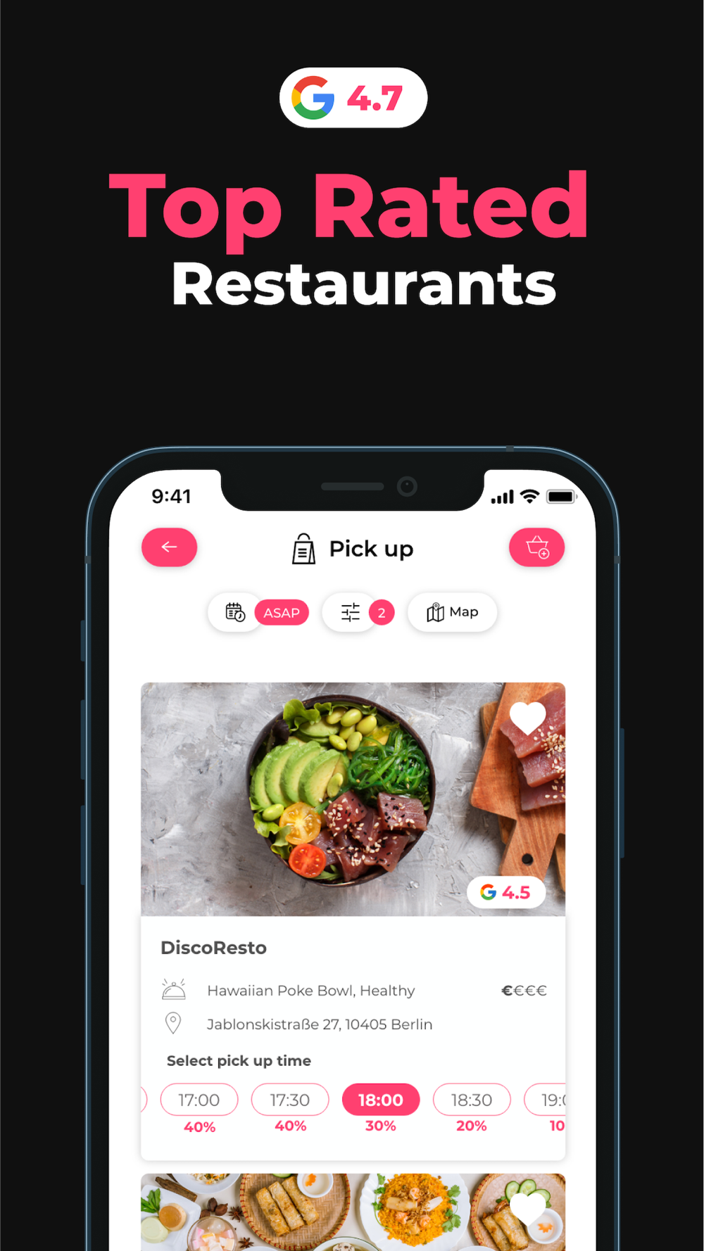 Depending on the time of day, users can book tables with a discount or order food for less. Because of the time-based discounts, you can enjoy all the dishes on the regular menu for a lower price. This is a great option to discover new restaurants. All our restaurants have very good Google reviews. Search for your favorite cuisine, a district, or use your location to find the best restaurants and food in your city!