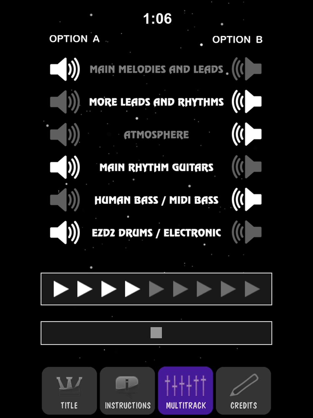 - Each track contains two "speaker" buttons which let you select which instrument you want to hear. You can hear each recorded part by itself or not at all.