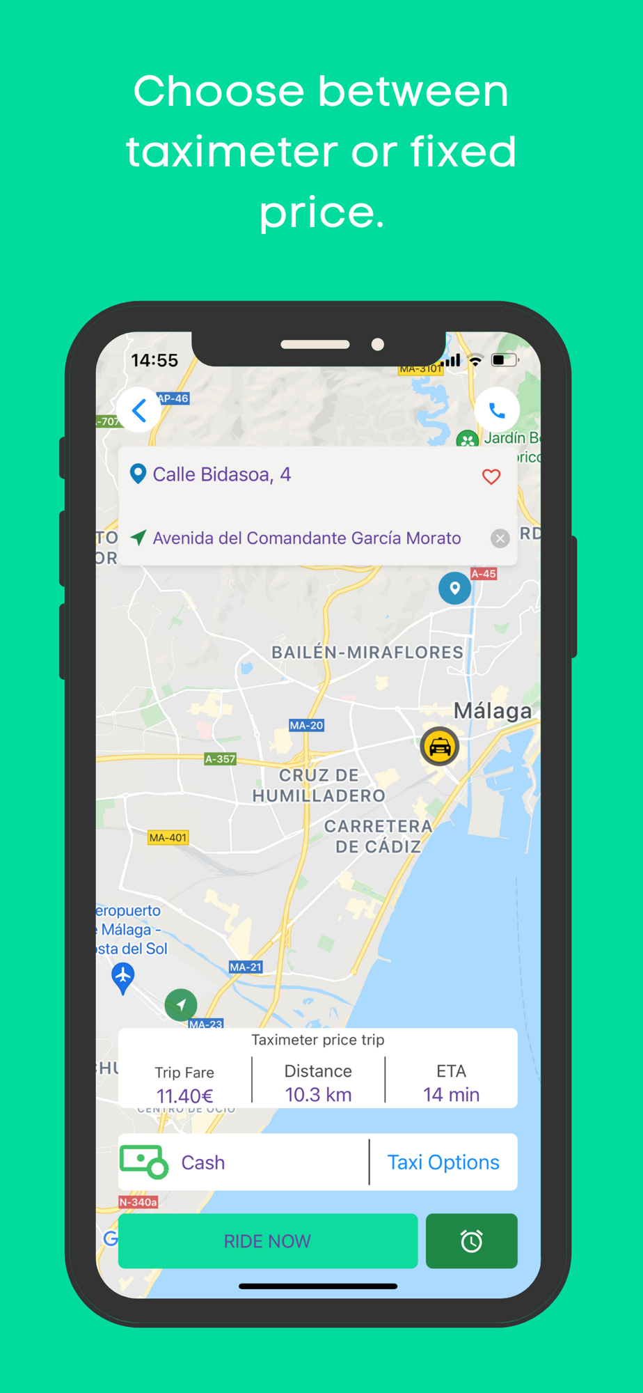 4. Confirm your pick-up point and, if you wish, your destination, so we can inform you of the estimated price of the journey.