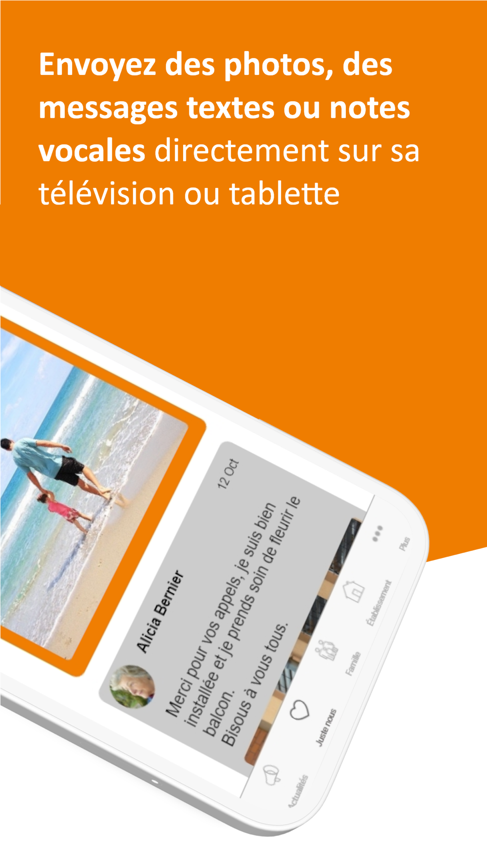 Envoyez des messages textes et notes vocales, partagez des photos, faites des appels en visiophonie et gardez un lien privilégié avec votre parent.
