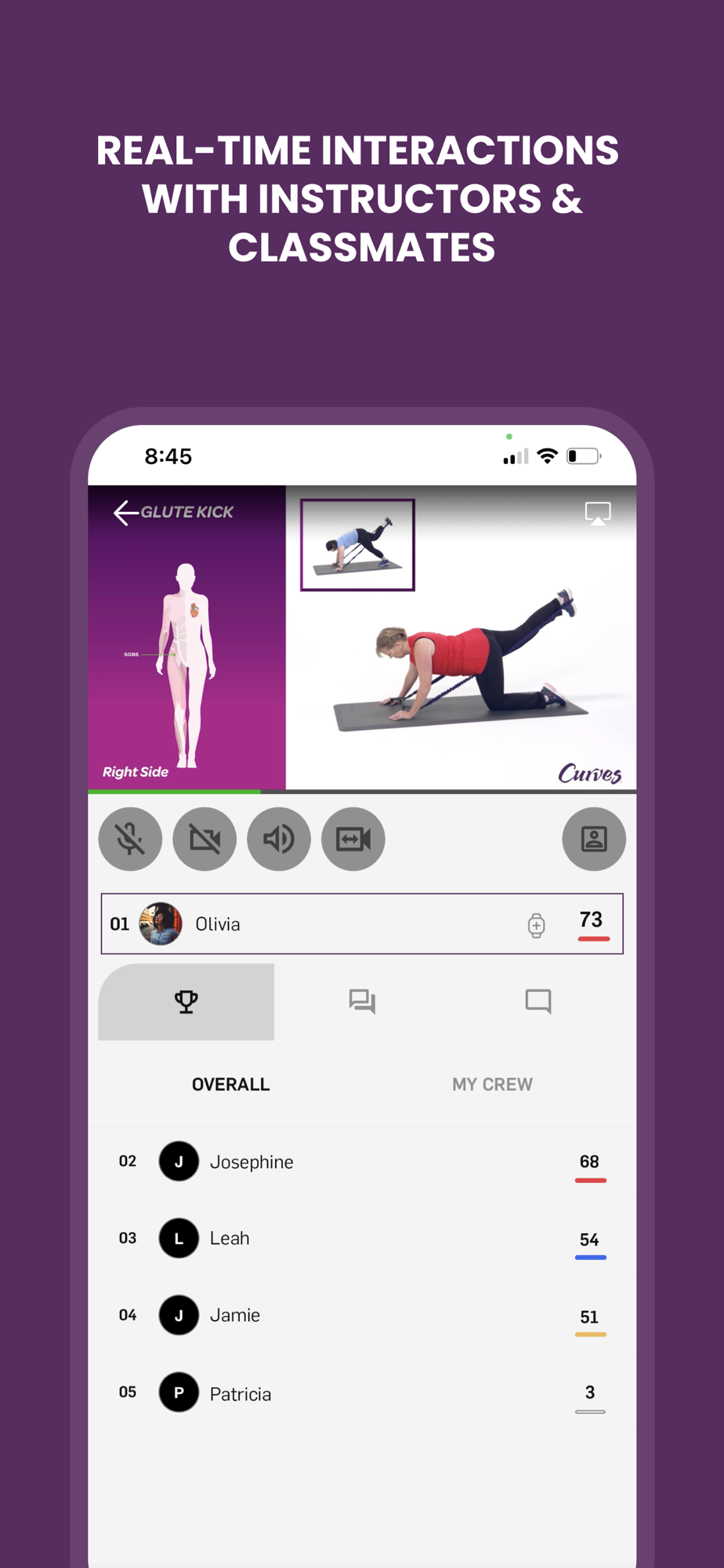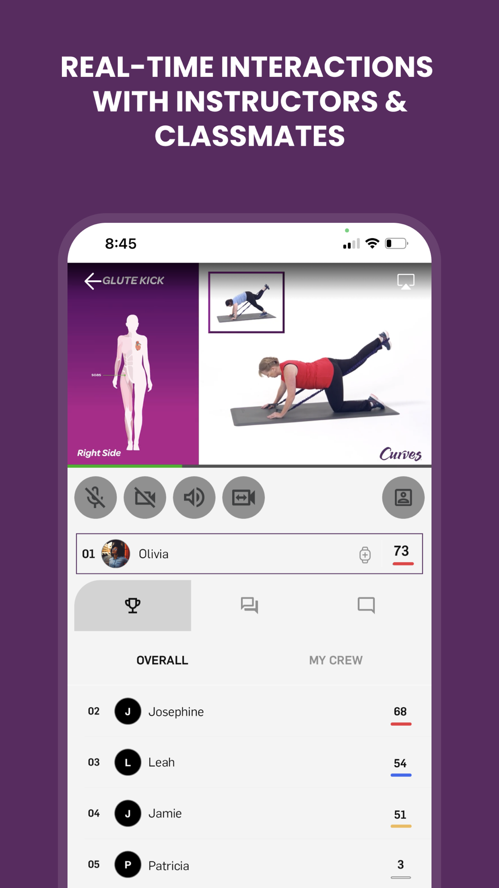 Our workout videos are developed by Curves program experts and led by Curves coaches, real women – just like you! You will be guided through a safe workout that targets all the major muscle groups, including: