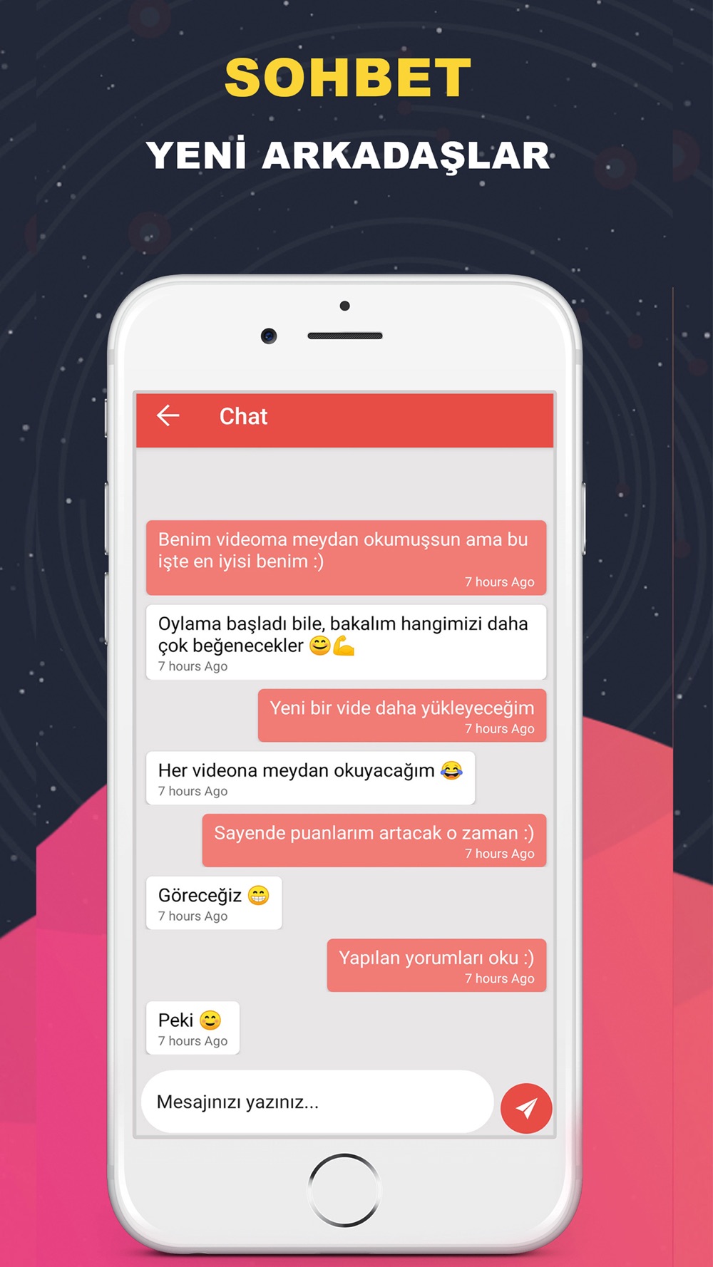 Challenge App, maksimum 10 saniyelik video ya da fotoğraf ile insanlara karşı meydan okuyabileceğiniz interaktif bir sosyal medyadır. Karşılıklı meydan okumalar, oylama sürecini başlatır. Oylama süreci bittiğinde, en fazla oy alan taraf 3 puan kazanır. Oylamanın berabere bitmesi durumunda her iki taraf 1 puan kazanır. En çok puana sahip ilk 100 üye, Liderler Tablosunda listelenir.