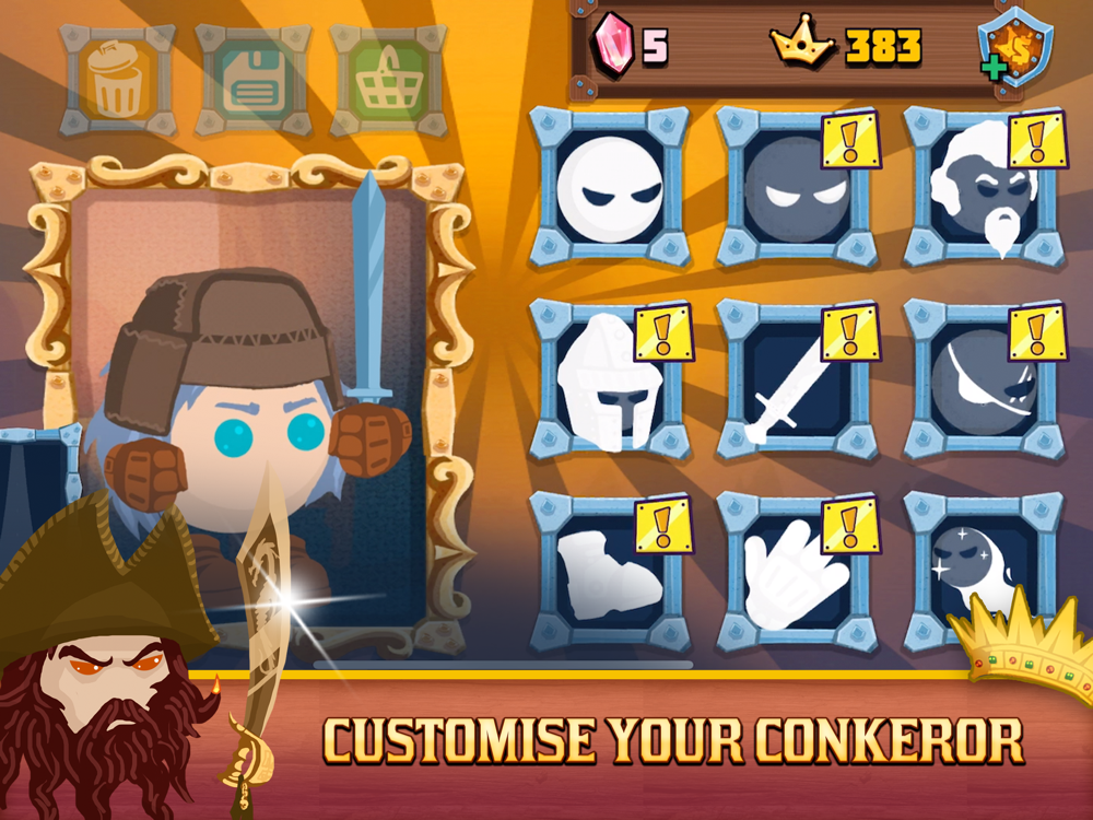 Blast through levels, defeating historical conkerors to earn currency and unlock customisable items for your conker.