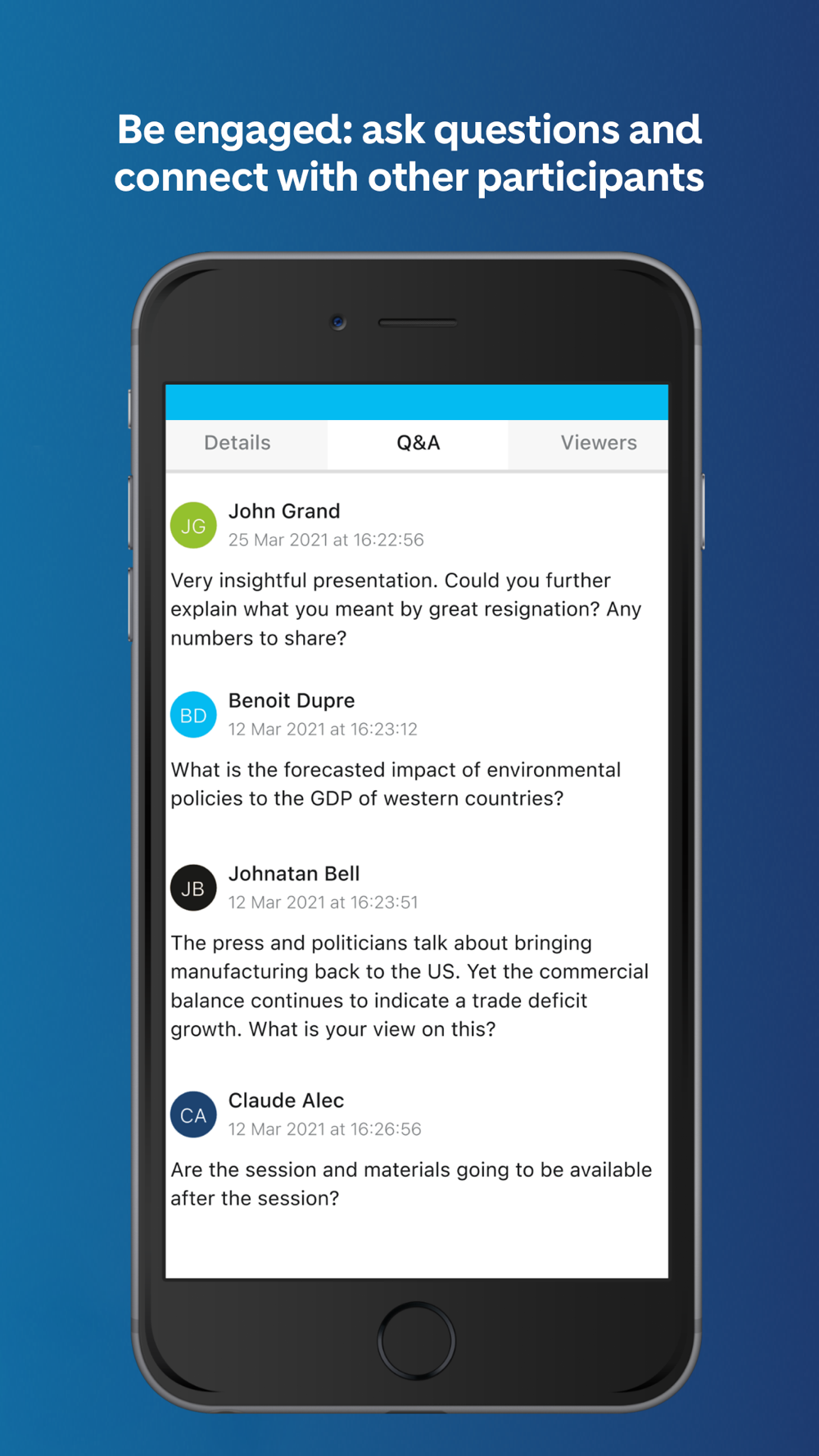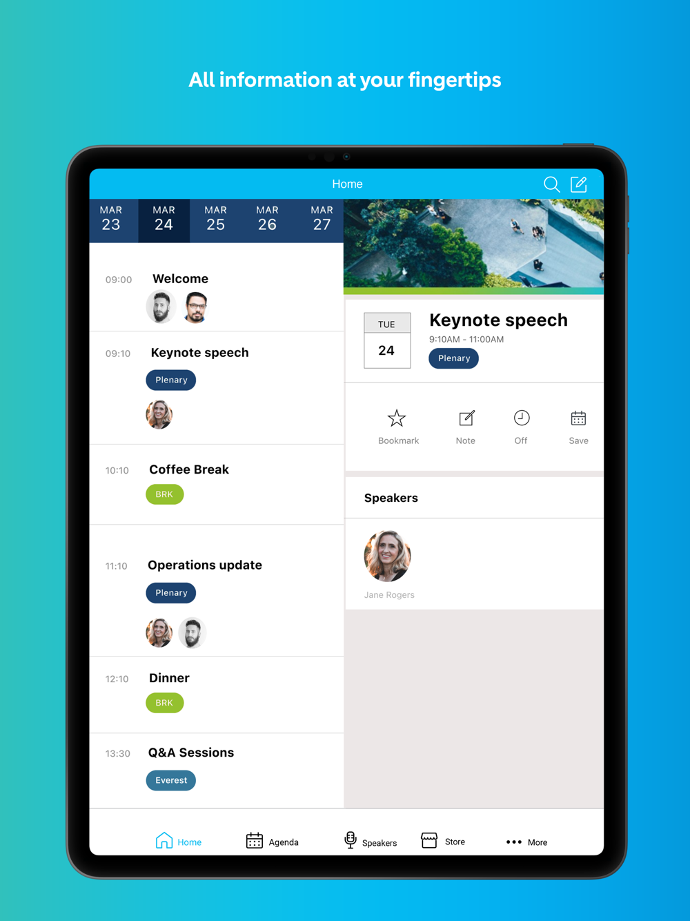 The Holcim Events app makes event details available at your fingertips. This app allows participants to consult personal agendas, obtain up-to-date information about the event, share ideas during sessions and interact with one another.