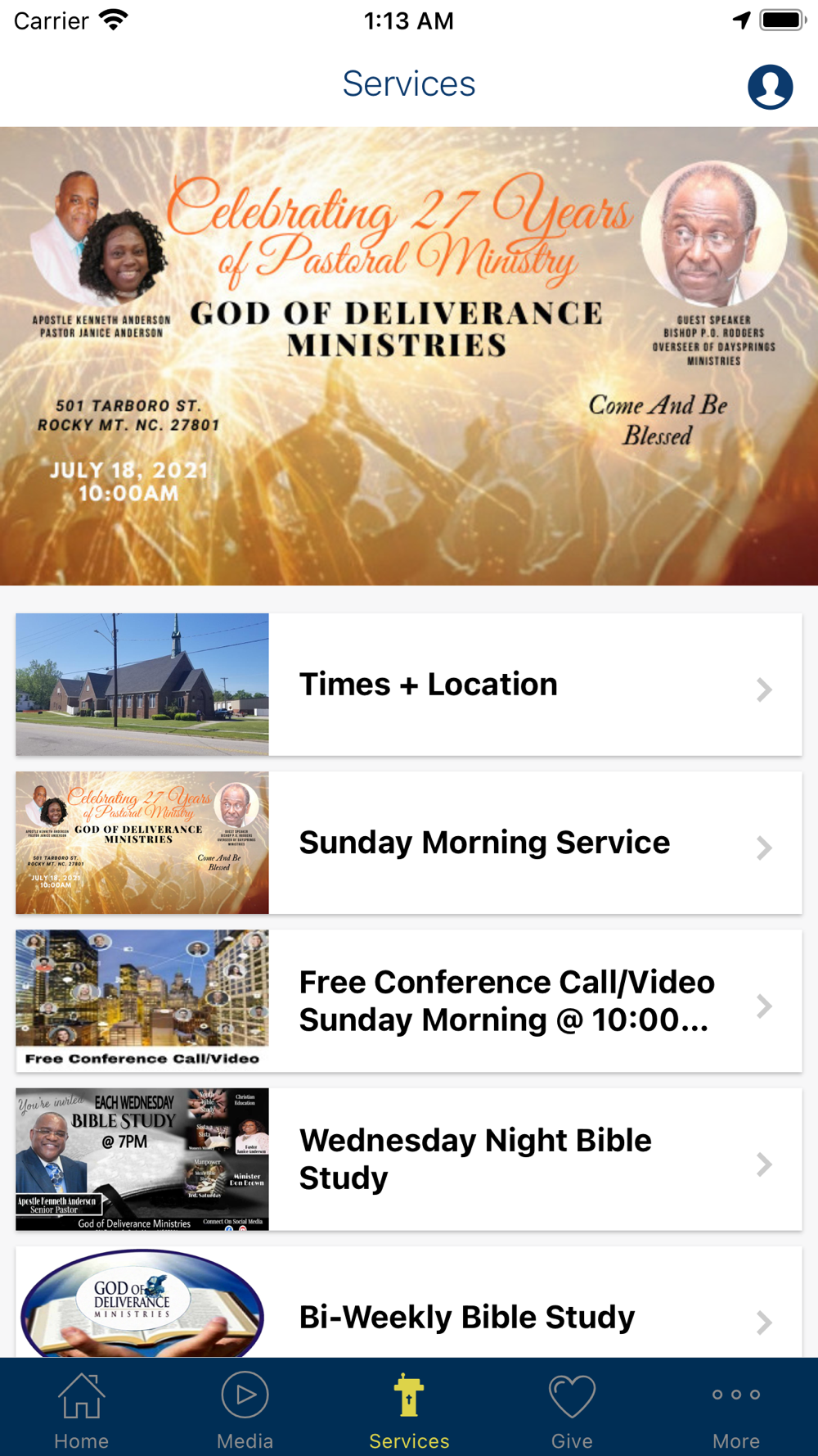 Connect and engage with our community through the God of Deliverance Ministries app! Download our app to discover our media content, give a donation conveniently, or learn more about us. God of Deliverance Ministries exists to love and serve the community.