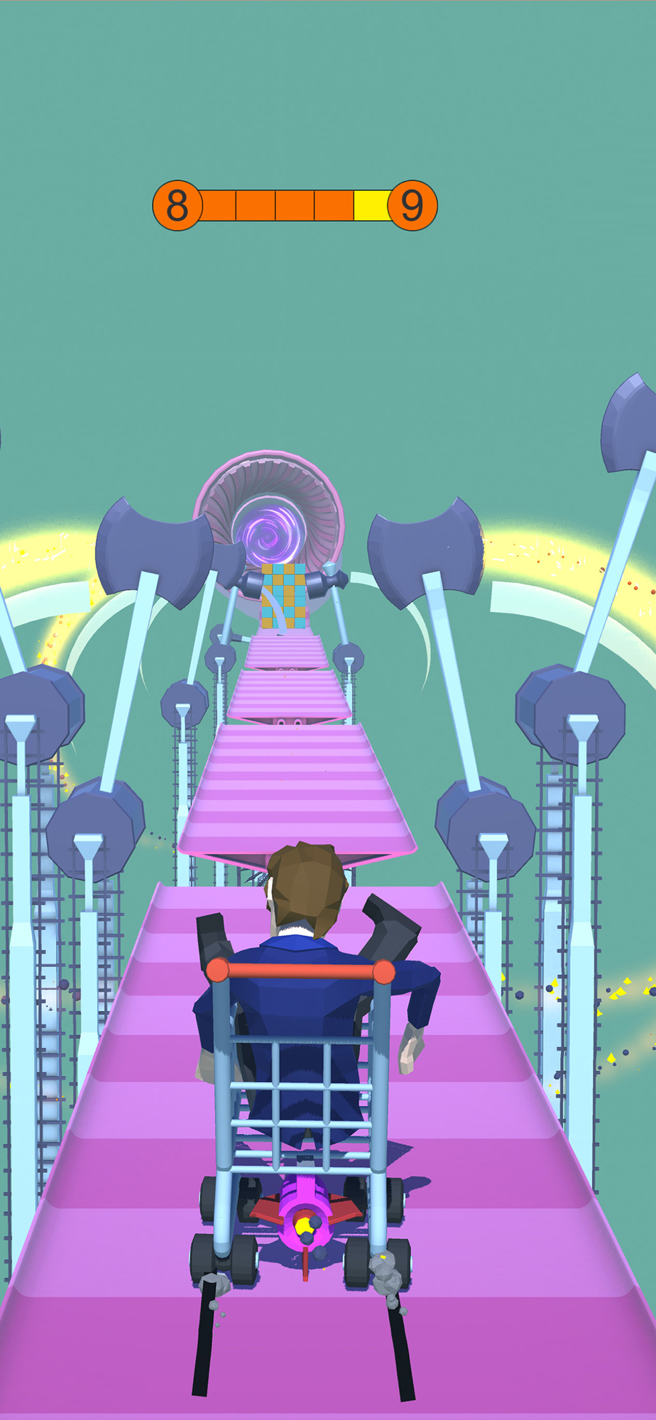 Are you ready for an amazing action ? Run your character on the trolley to the portal and pass all the levels. Don't get hit by the heavy obstacles and don't fall down !
