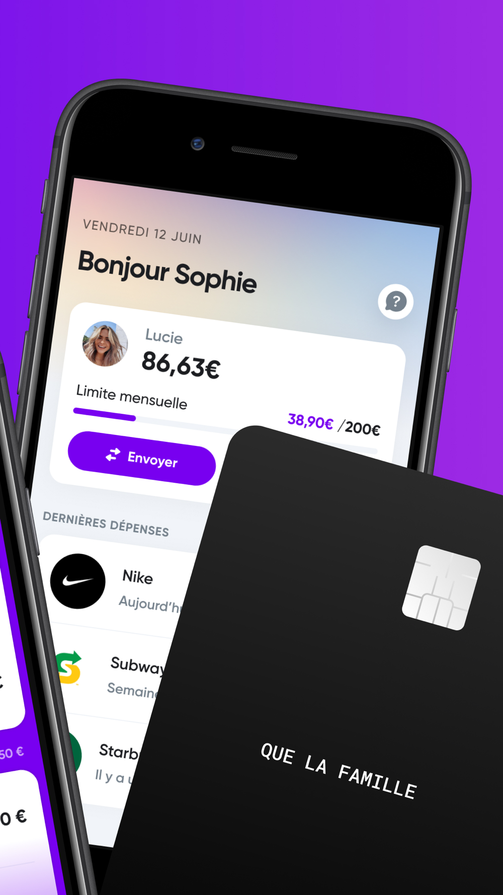 - Envoyez de l’argent de poche instantanément en quelques clics depuis votre app