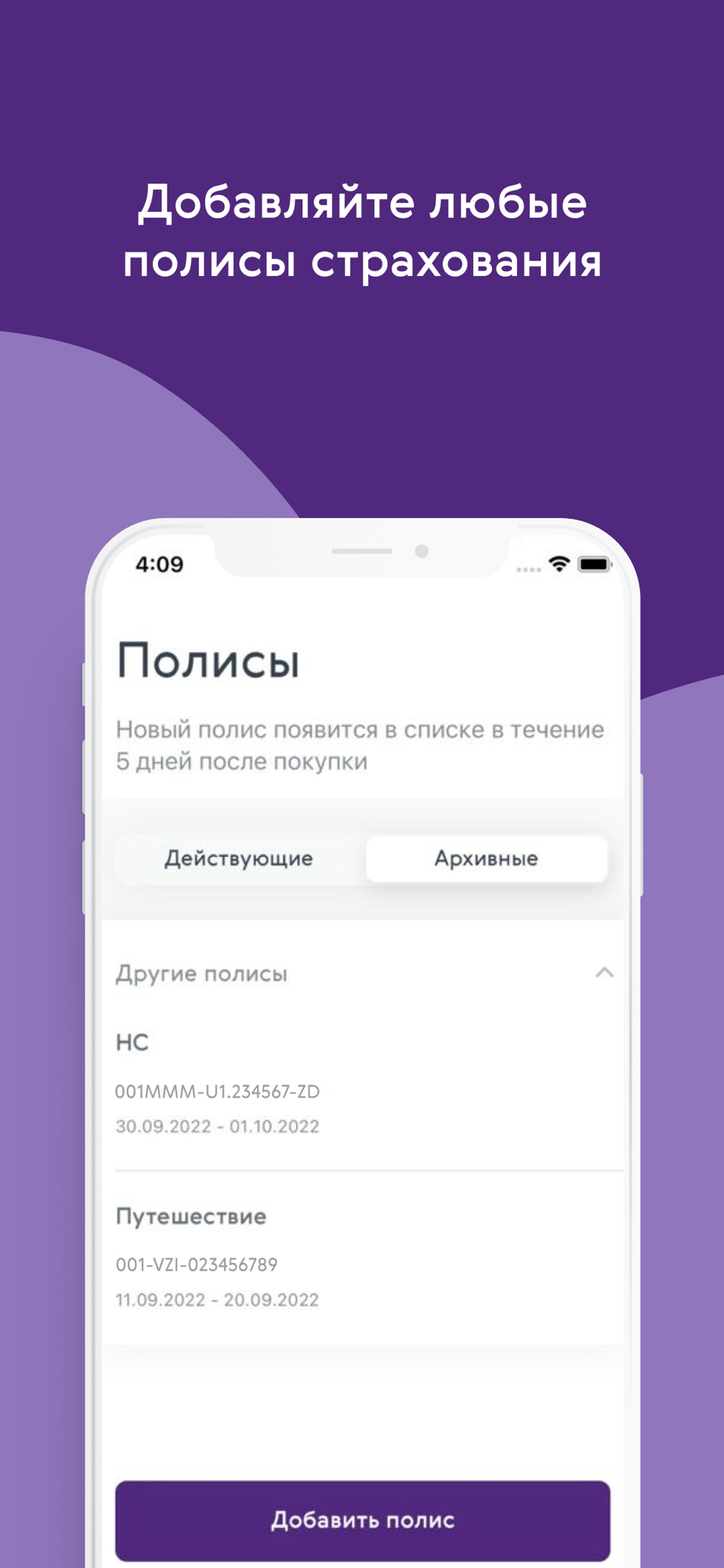 Храните свои полисы в приложении, заявляйте о происшествиях, получайте полное страховое сопровождение. Получайте информацию о новых услугах и предложениях компании.