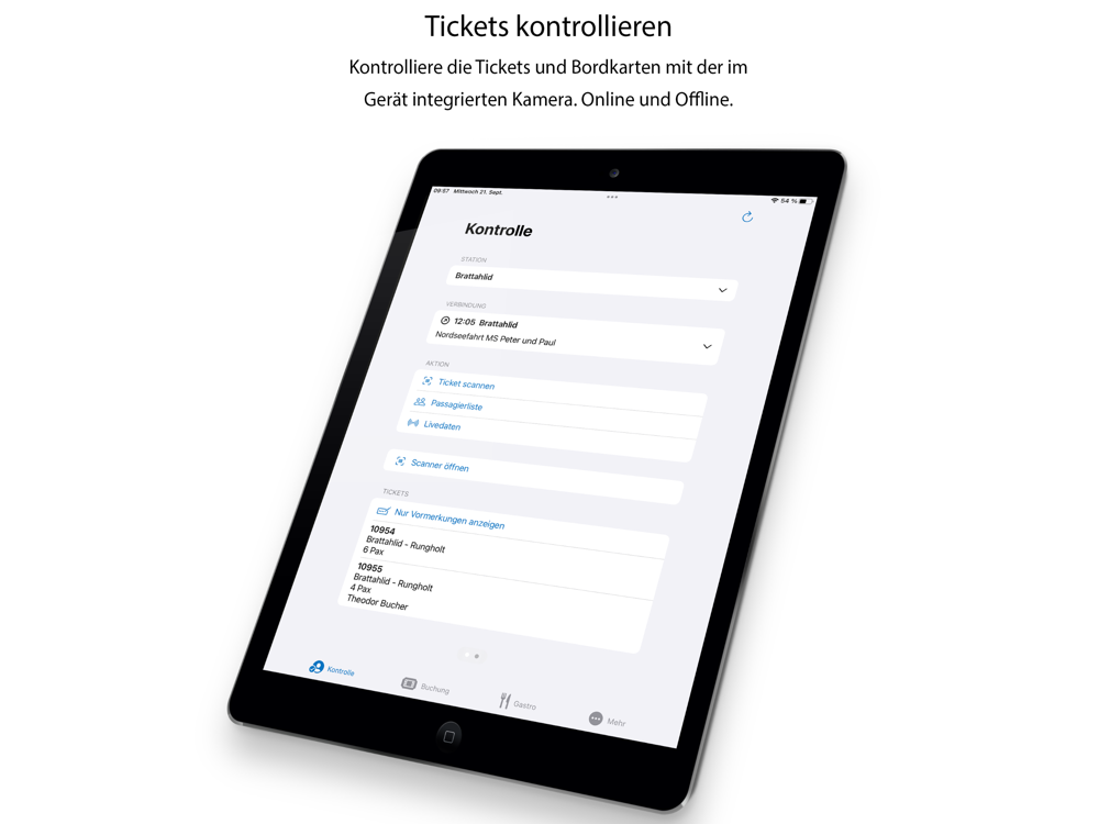 App for handling ticket control and mobile bookings with the Travelmanager Online Booking software. The app is working online and offline without an internet connection.