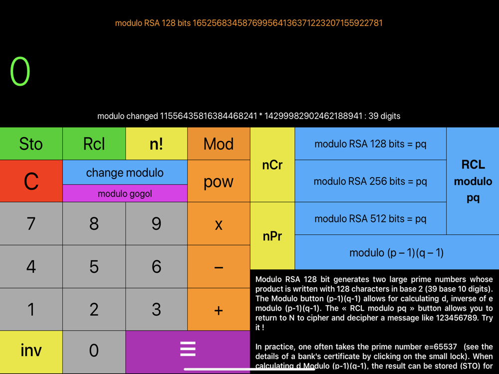 This is a modulo calculator overpowering almost limitless! (only display is limited !)