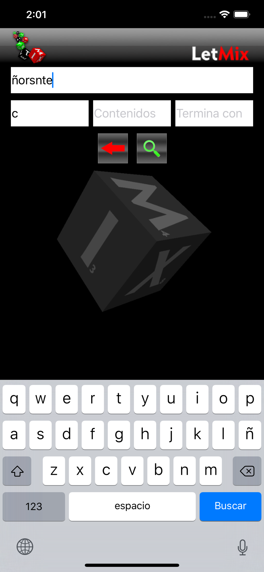 Simplemente ingresa los caracteres que poseas y presiona el icono de búsqueda. En instantes, LetMix encontrará todas las palabras validas que pueden ser combinadas con los caracteres ingresados.