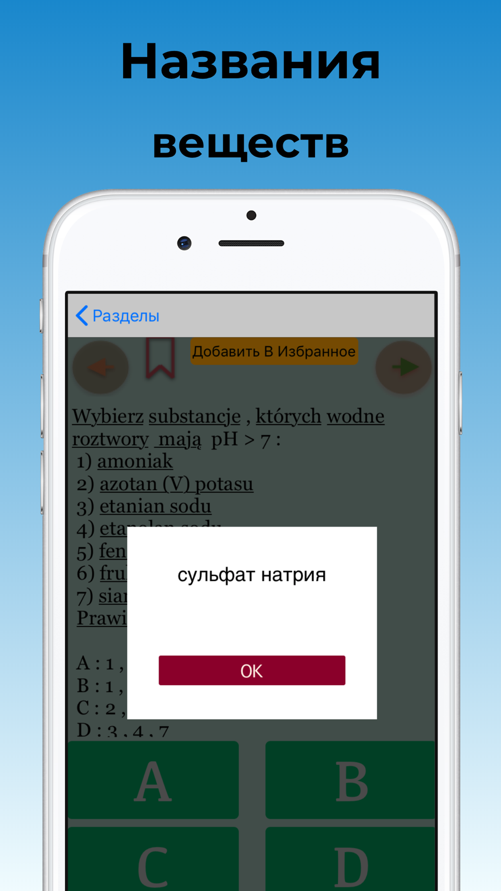 Это приложение позволит вам ознакомиться с терминами по химии , одновременно отвечая на вопросы .