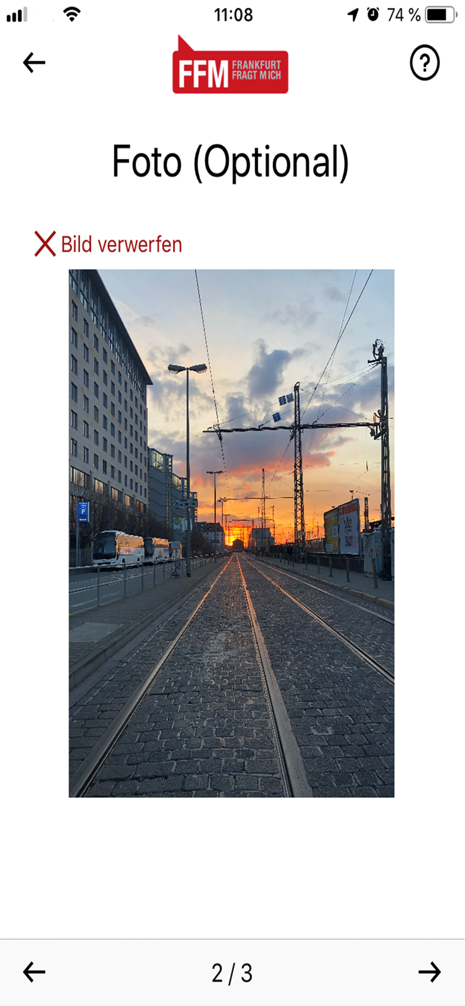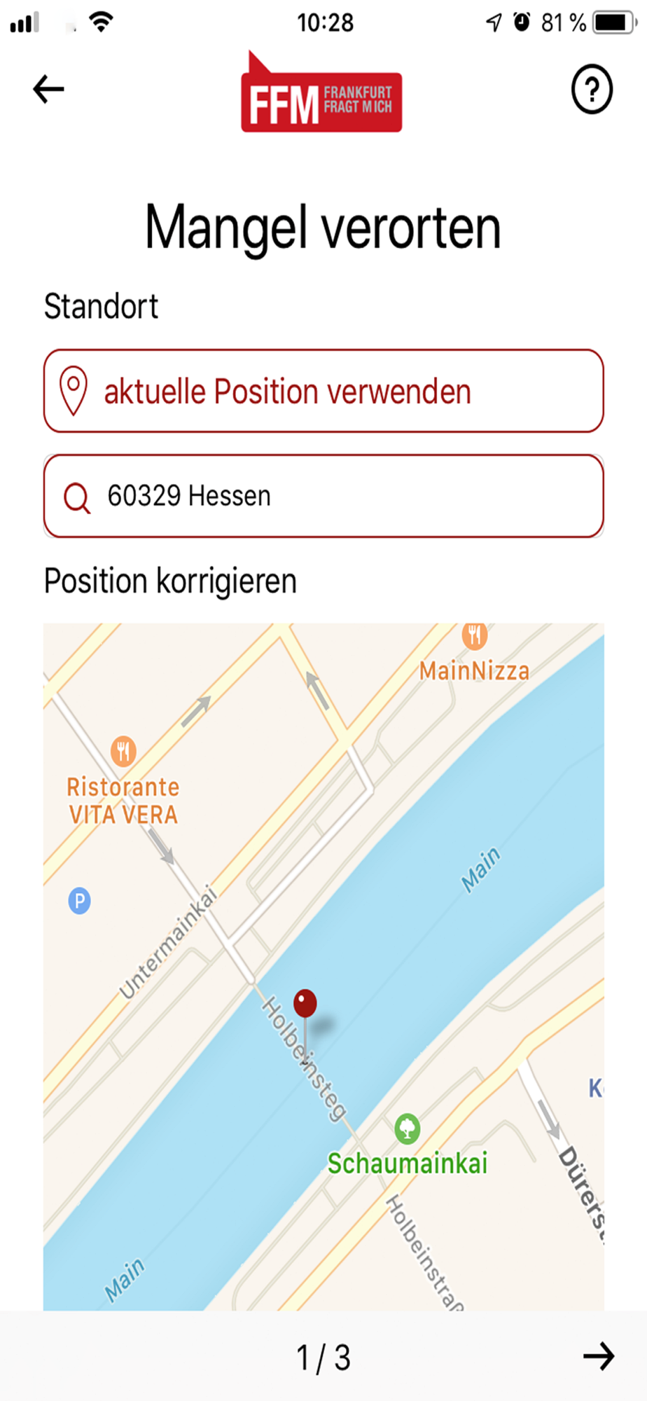 Die ffm.de-App ist eine Erweiterung des Portals „Frankfurt fragt mich“. Alles was über die App gemeldet wird, erscheint auch im Portal und umgekehrt.