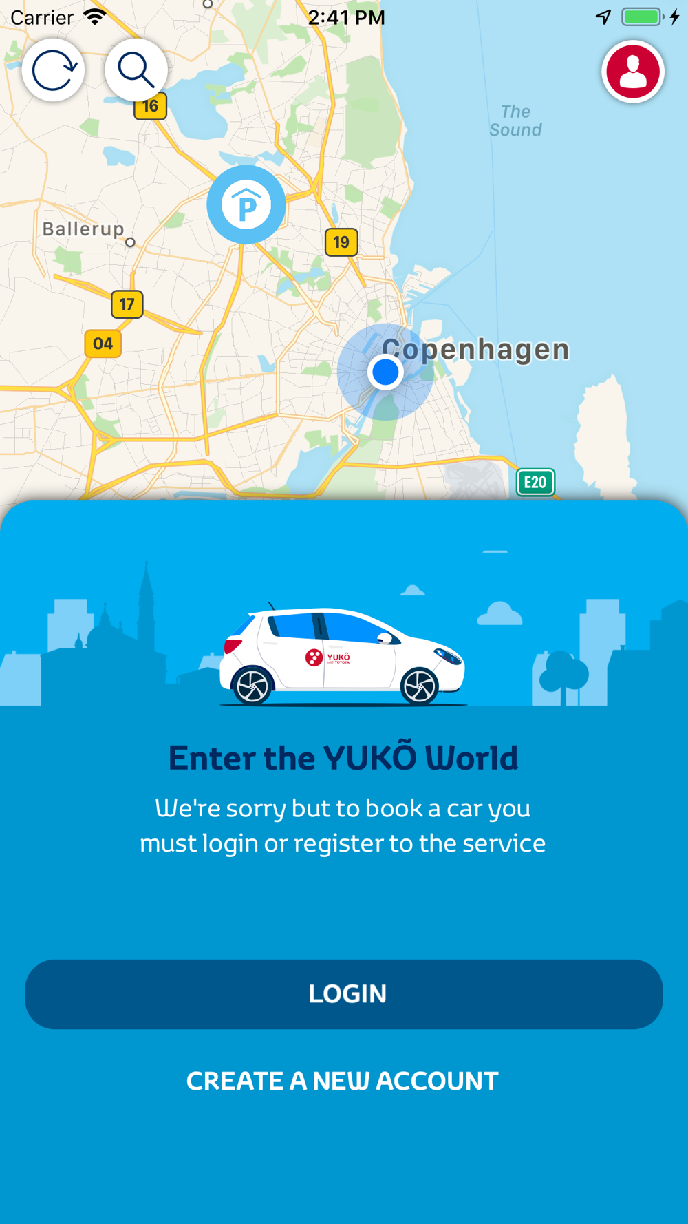 Registrer dig som bruger i app’en og book din YUKÕ-delebil med det samme. Husk at registrere, om du kører firma- eller privatkørsel.