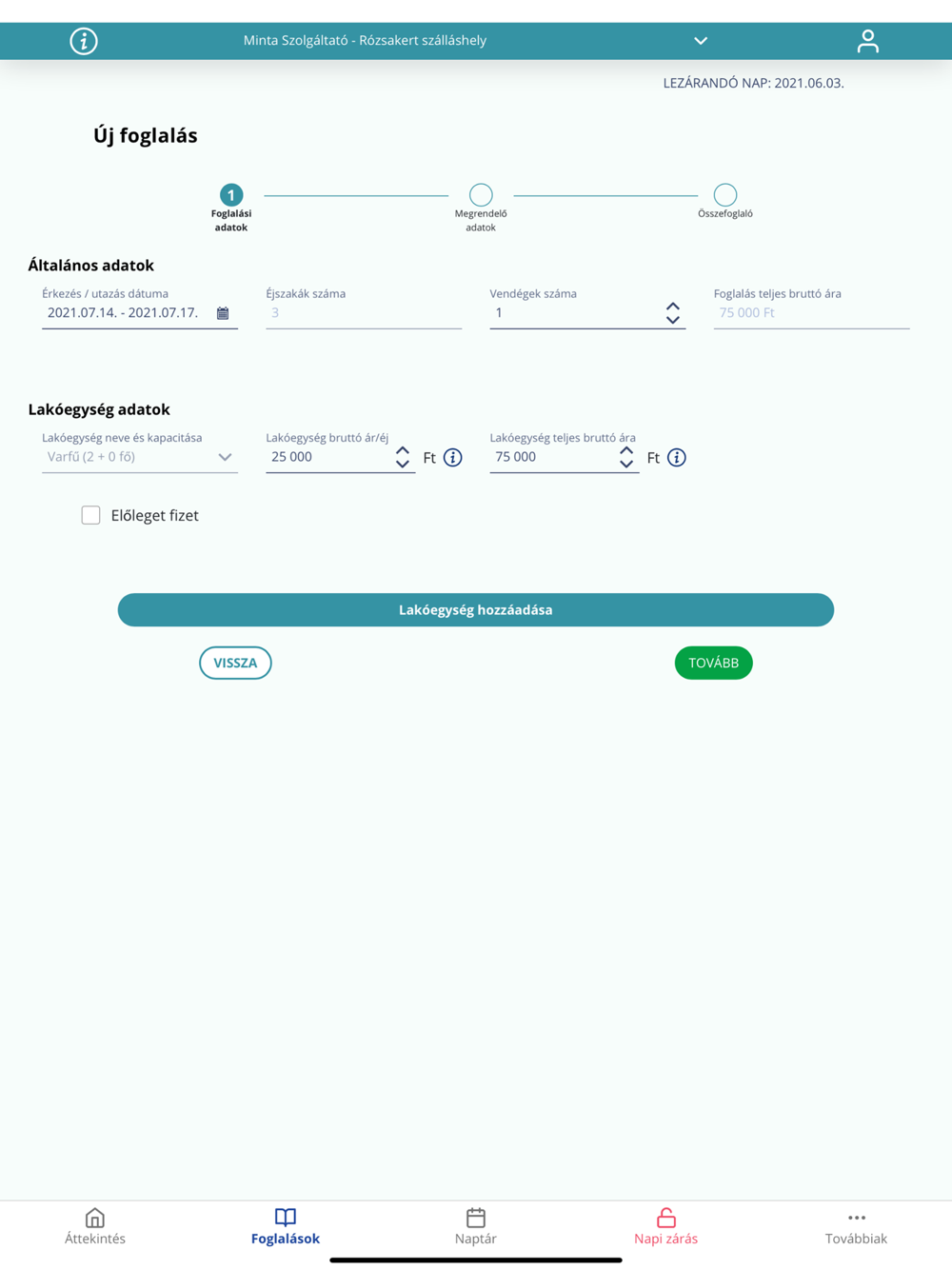 A Magyar Turisztikai Ügynökség ingyenesen biztosítja a VENDÉGEM Szállás szálláshelykezelő mobilalkalmazást a legfeljebb 8 szobával és 16 férőhellyel rendelkező szálláshelyek részére, amelyet a Nemzeti Turisztikai Adatszolgáltató Központba (NTAK) regisztrálnak. A mobilalkalmazásban a szálláshely teljeskörű adminisztrációja elvégezhető, minden foglalás előre rögzíthető, a vendégek szobaszámláihoz a szállásdíjon kívüli egyéb költések is feljegyezhetőek. A mobilalkalmazásban okmányolvasó modul is található, amivel a szállásadók és a vendégek is be tudják olvasni az okmányok adatait, és az NTAK adatszolgáltatást is automatikusan teljesíti.