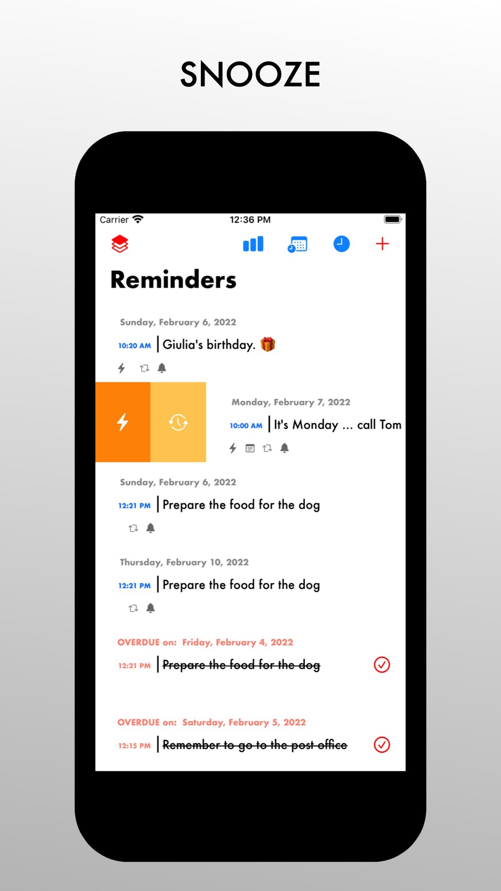- Create, edit, delete all recurring reminders you want.