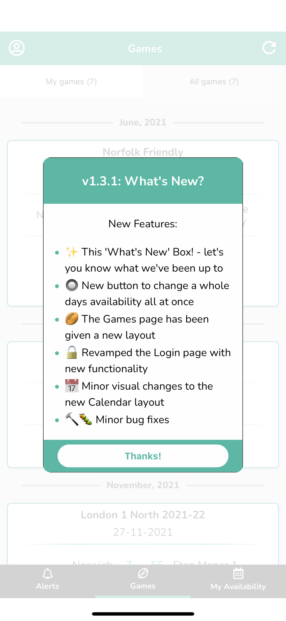 This version of the App will provide you with the key information regarding games, access to a personal availability calendar and contact details in your group.