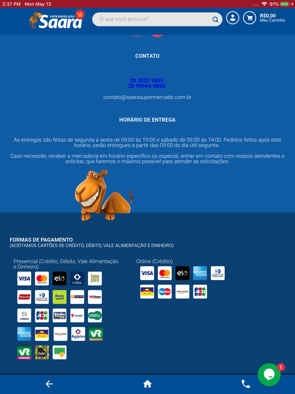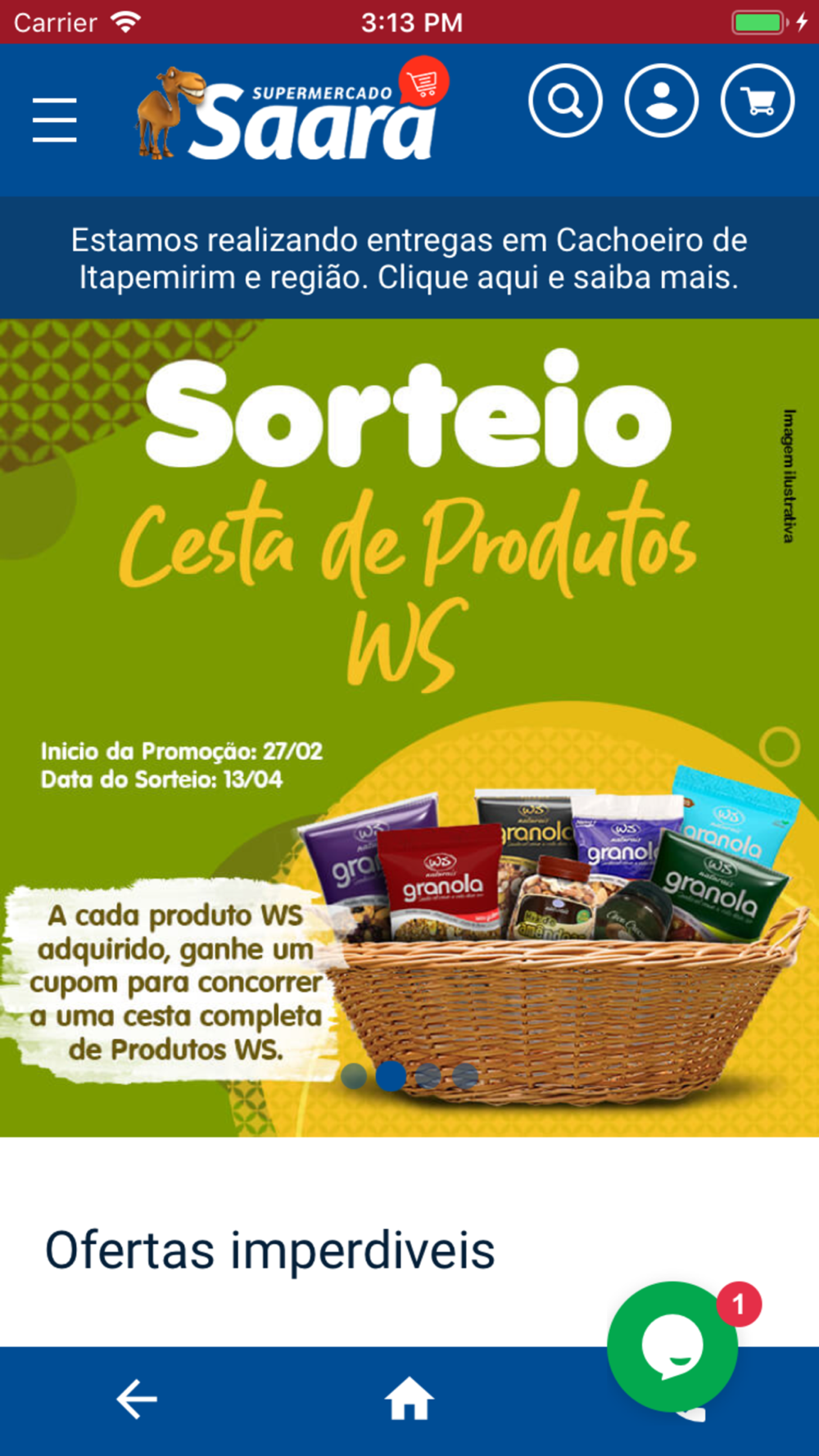 Com o Saara Supermercado você conta com a comodidade de poder fazer compras online. Com o aplicativo do Saara é possível economizar tempo e dinheiro. Aproveite e conte com diversas outras vantagens!