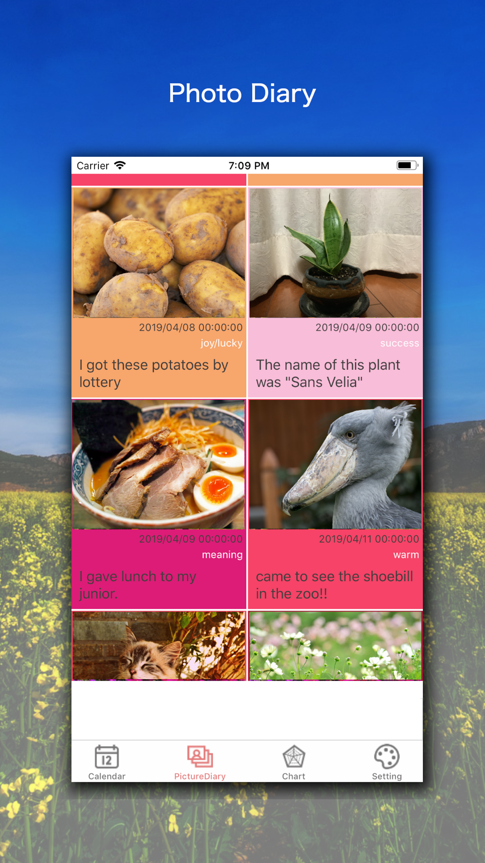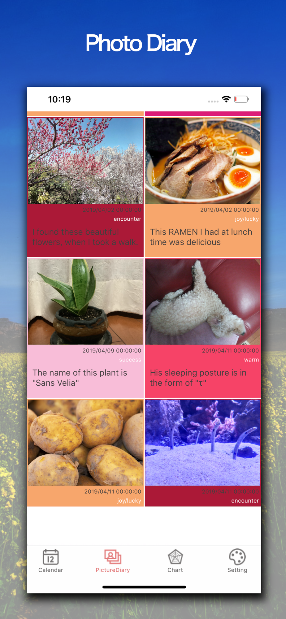 The diary logs with photos are collectively displayed by "Photo Diary Function".