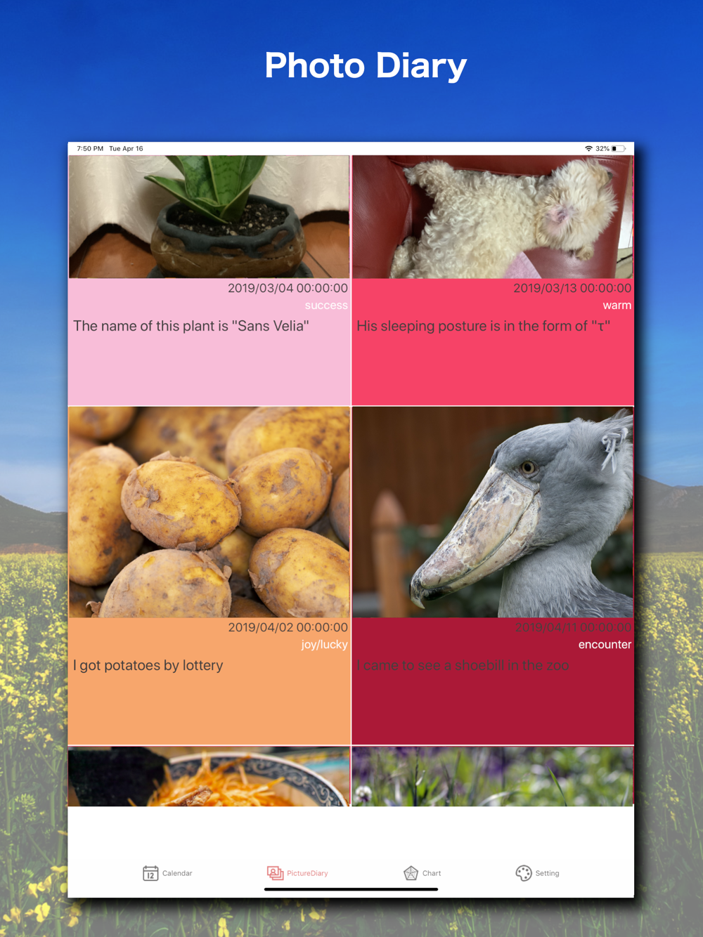 Happy Stocker can not only be used as a life log or diary, but also use as a schedule book for realizing dream.