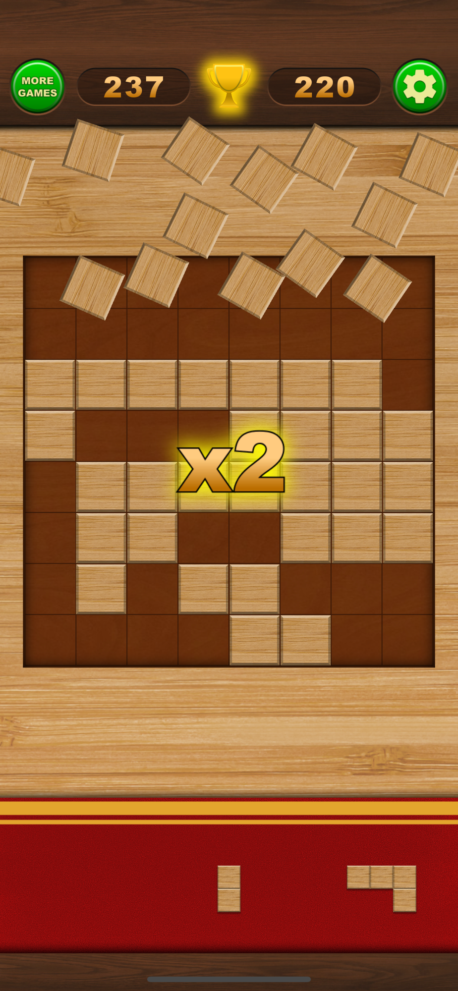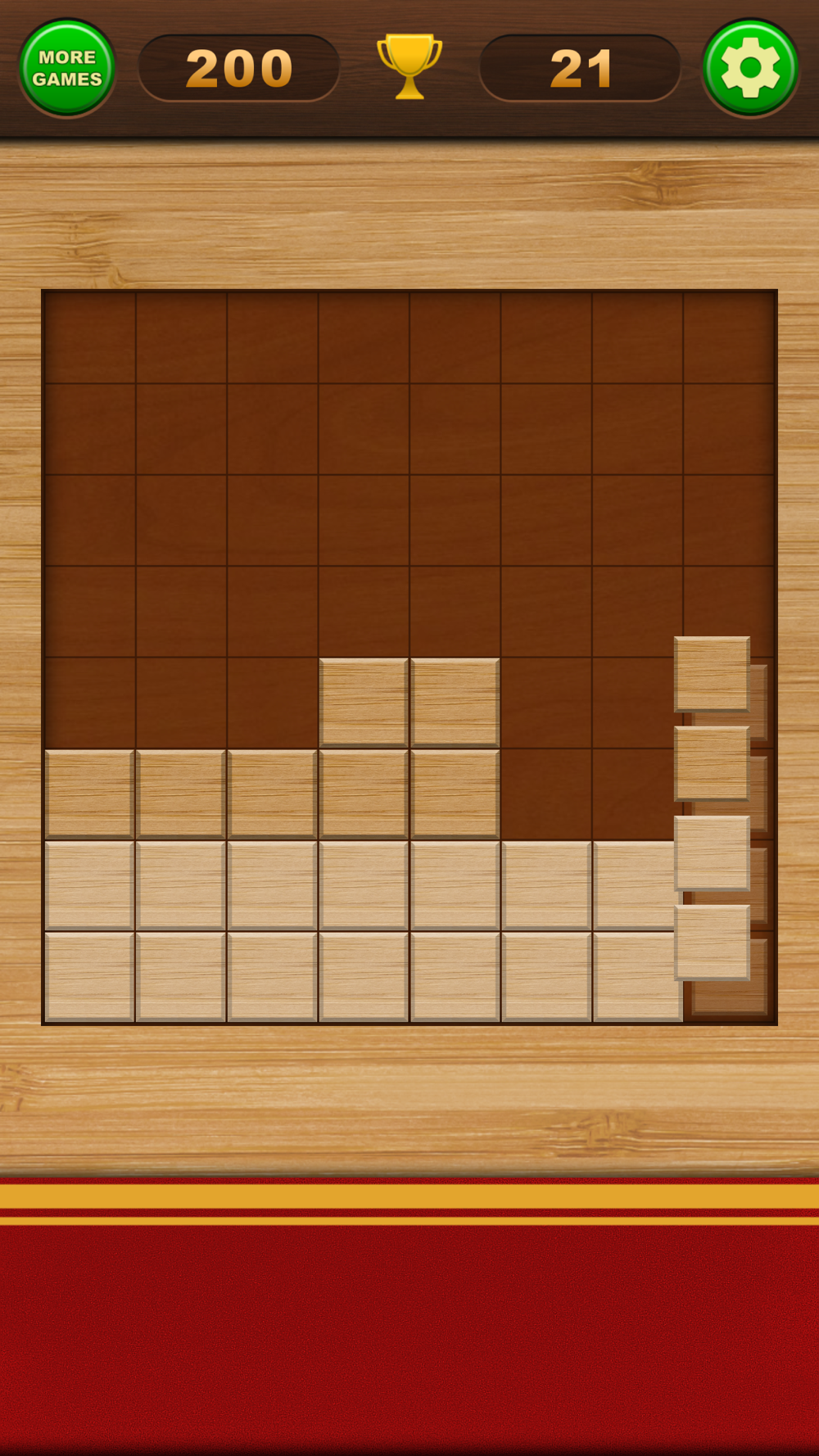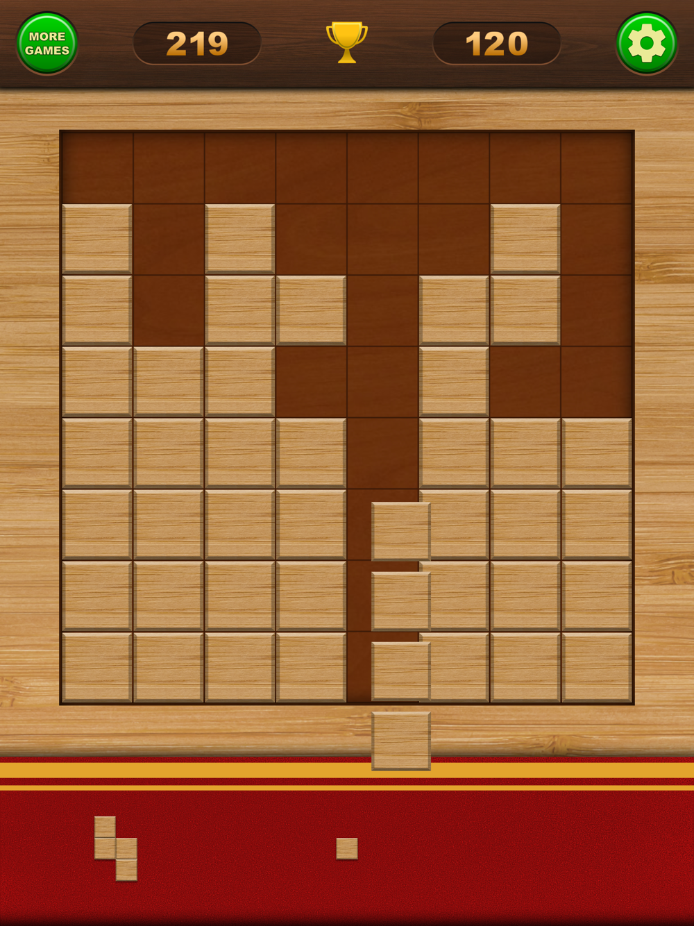 Place the blocks on the board, trying to complete entire rows and columns.