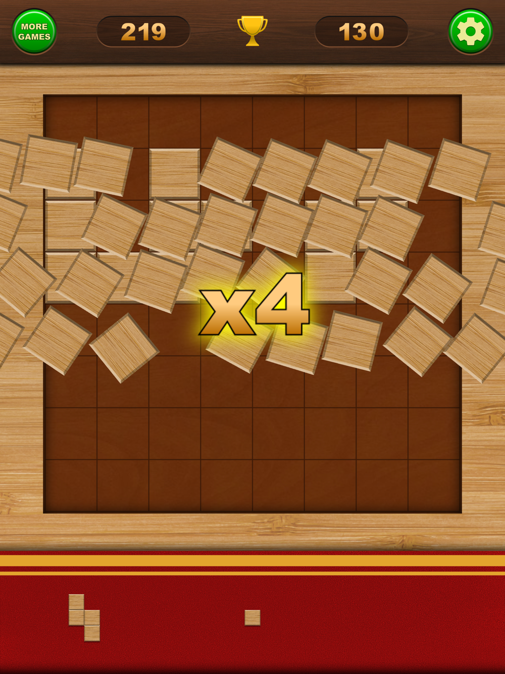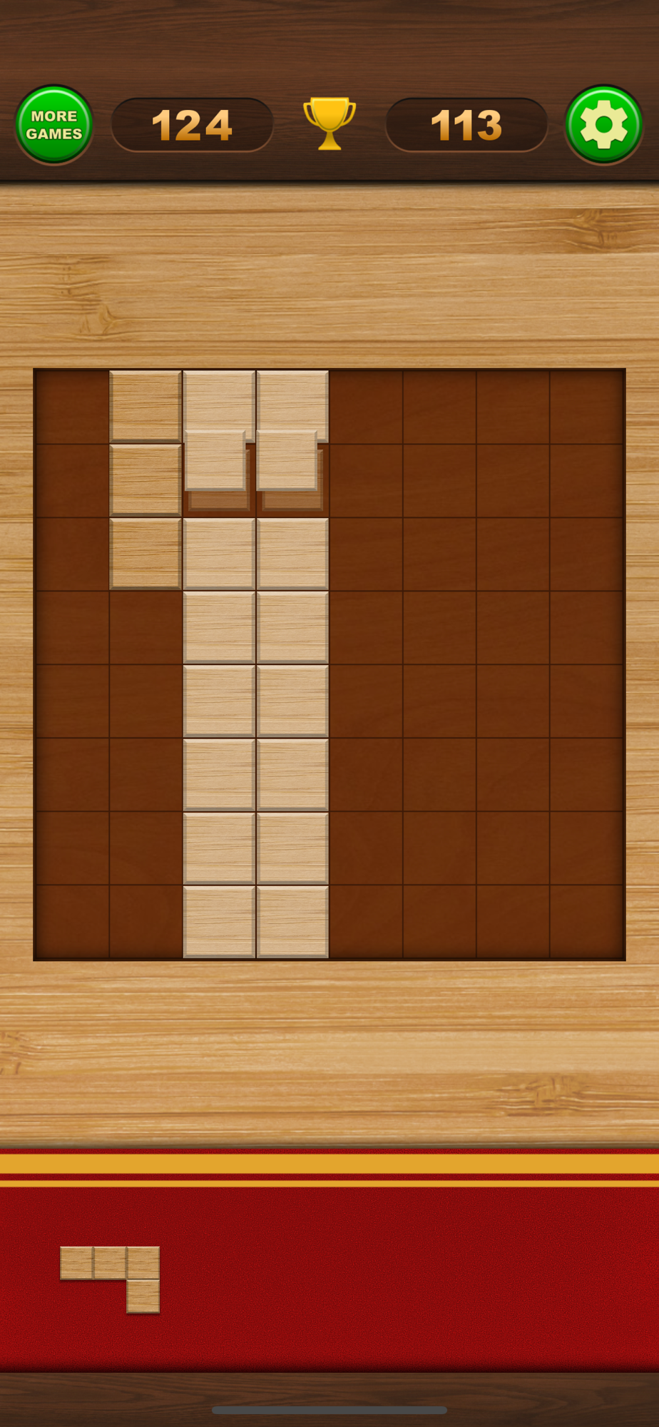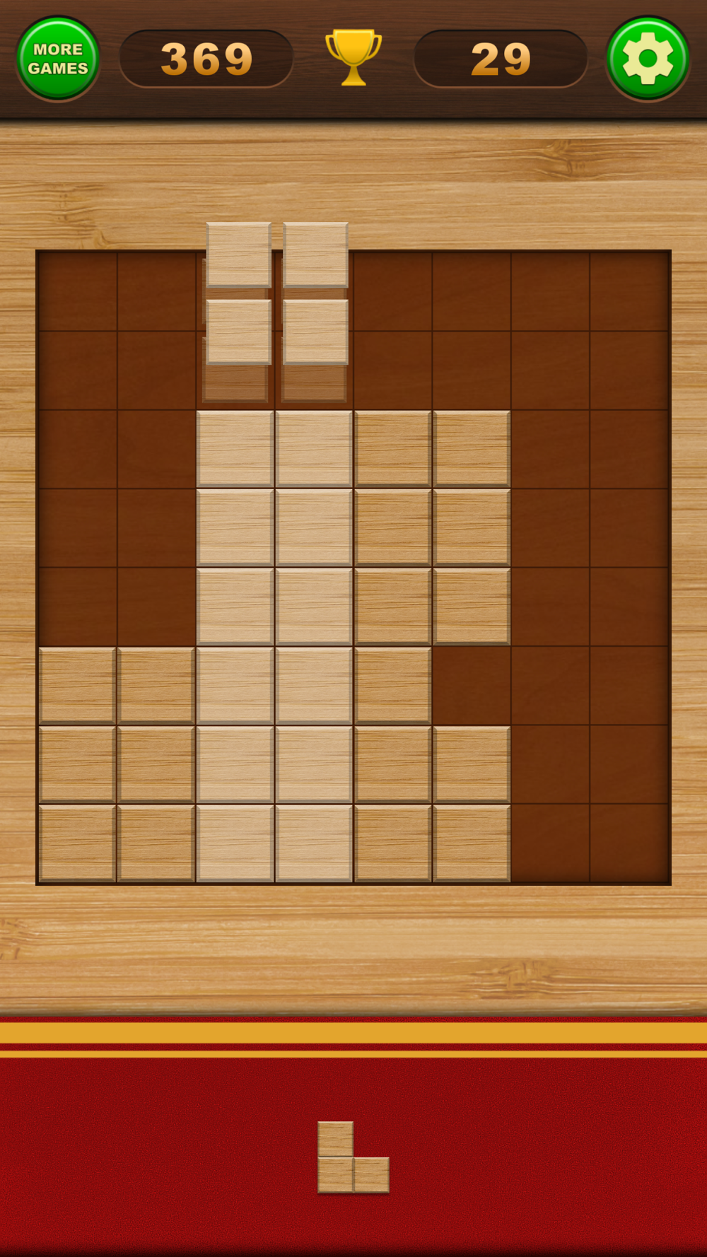 Place the blocks on the board, trying to complete entire rows and columns.