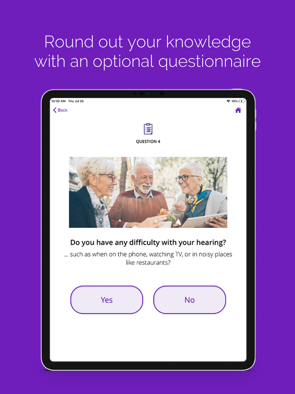 • If you choose, you can include an optional hearing perception questionnaire