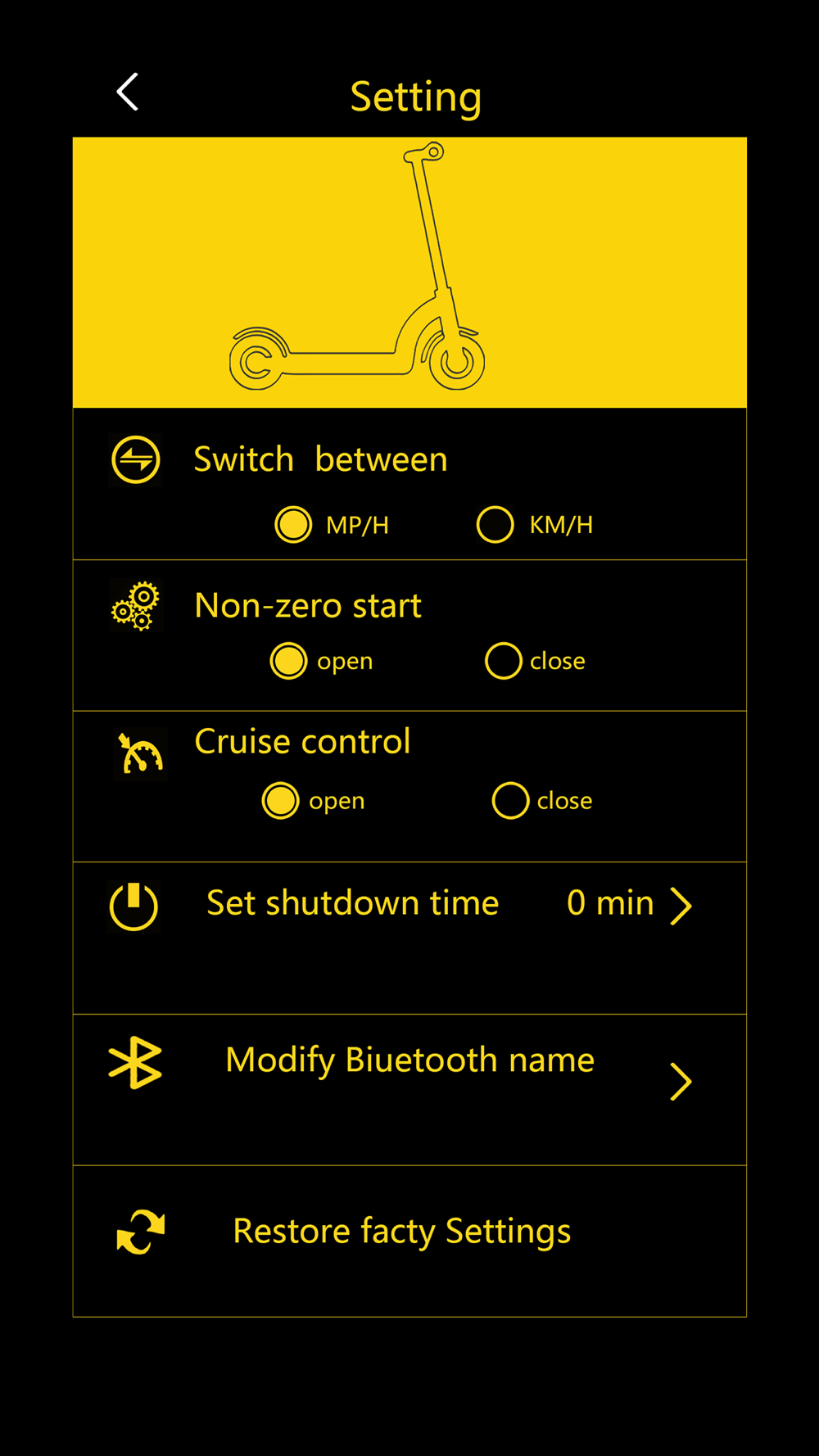 3.The APP can also Set the shutdown time for the scooter.