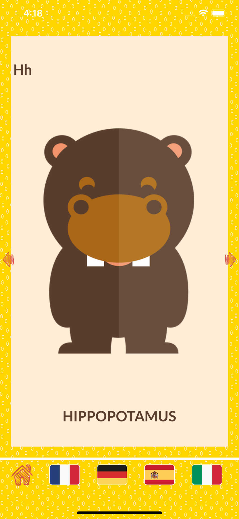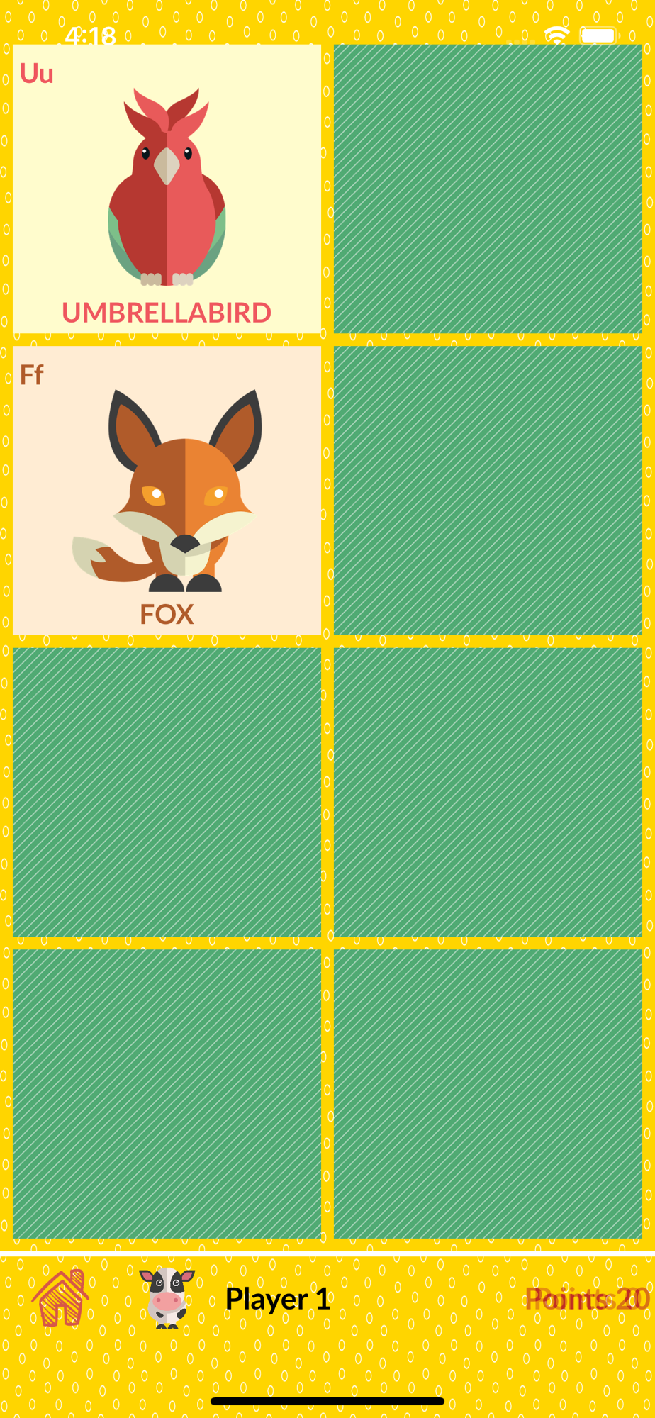 - Alphabets: you can see all the cards that contain the letters and their associated animals of all 5 alphabets;