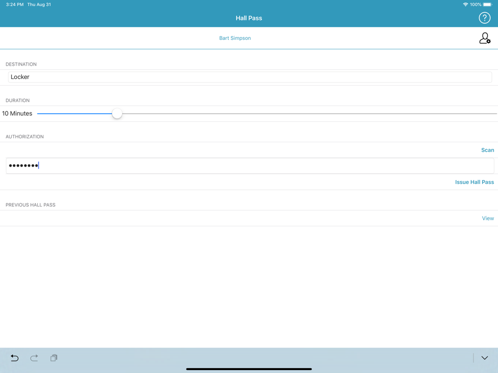 This app is the easiest way to get started with a Digital Hall Pass program, for schools with BYOD or 1:1 device programs.