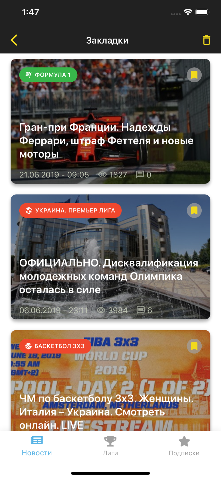 Вкладка «Последнее»: Лента всех новостей, которые отсортированы по дате и времени добавления.