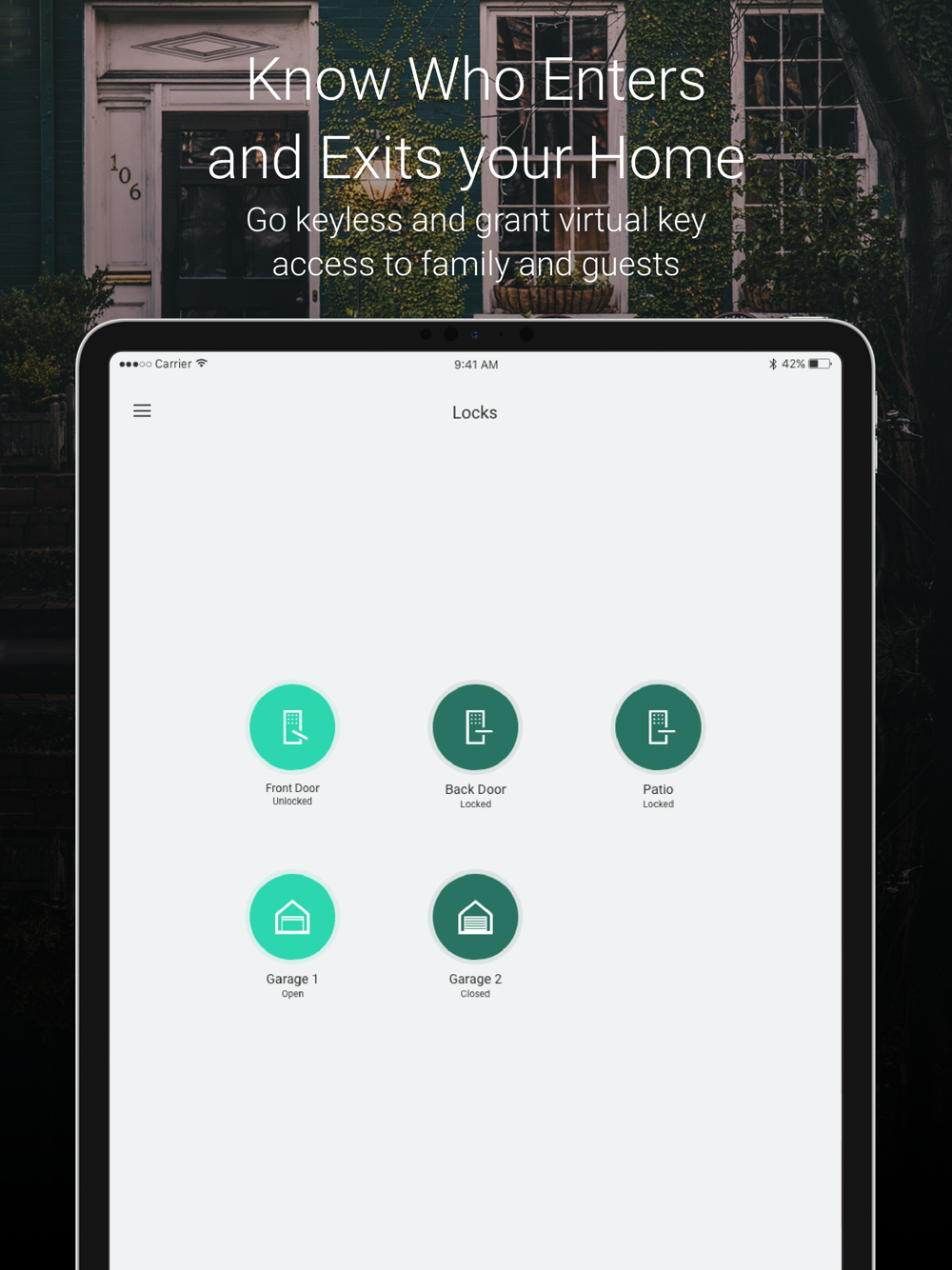Enjoy full interactive home control including lights, locks, cameras, thermostats, garage doors, and other connected devices.