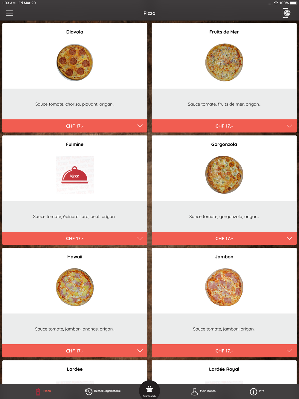 Bestellen Sie einfach Pizzasorten und türkische Gerichte.