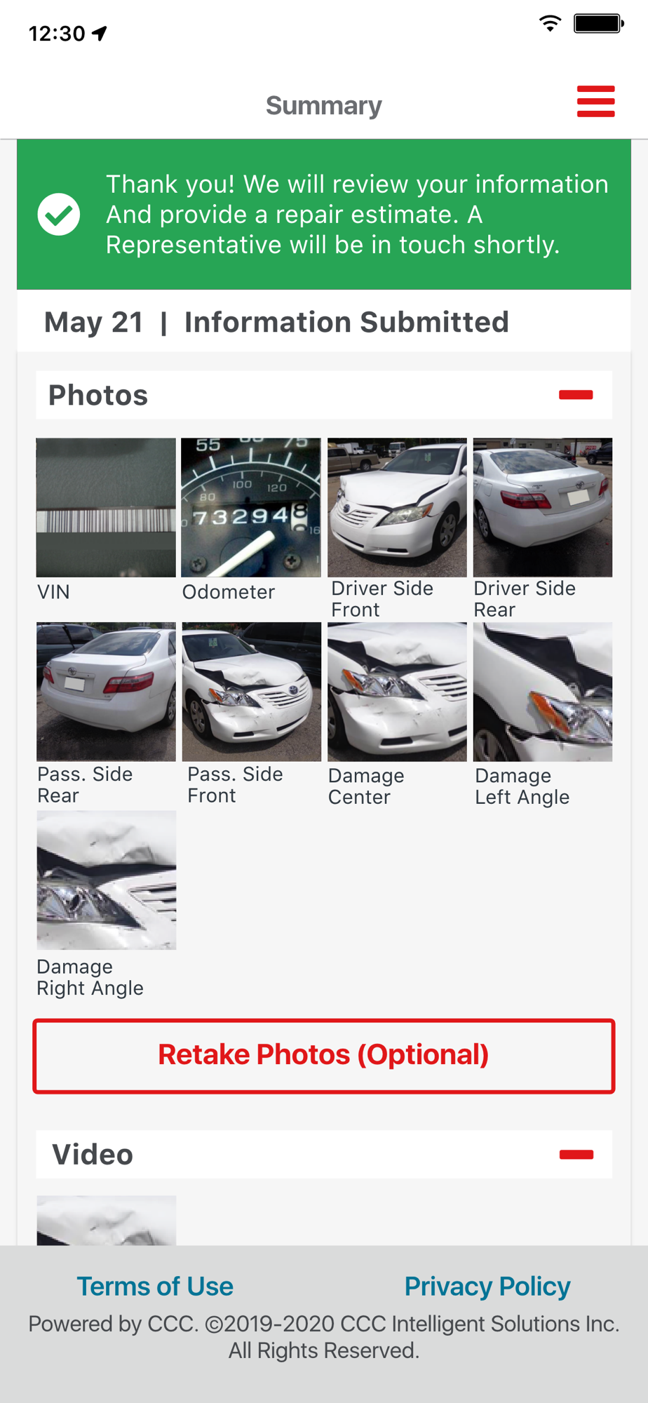 Travelers Photo Capture Auto app will help you by allowing you to upload images and a video so that we can prepare an estimate. The app will guide you through steps needed to capture the pictures of your vehicle’s damage and submit it for review.