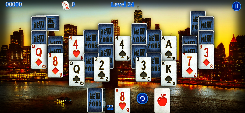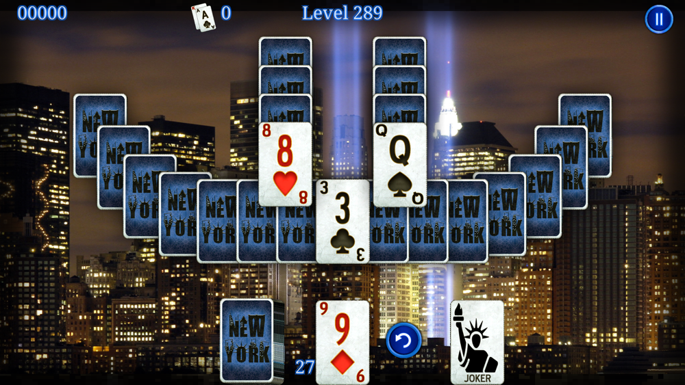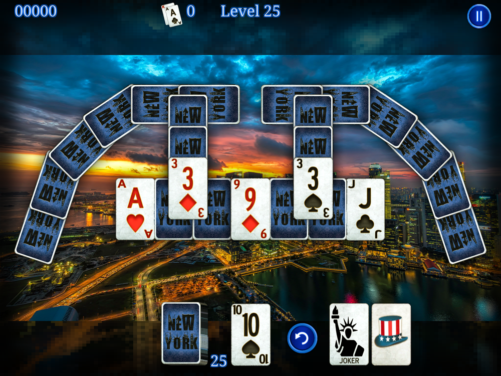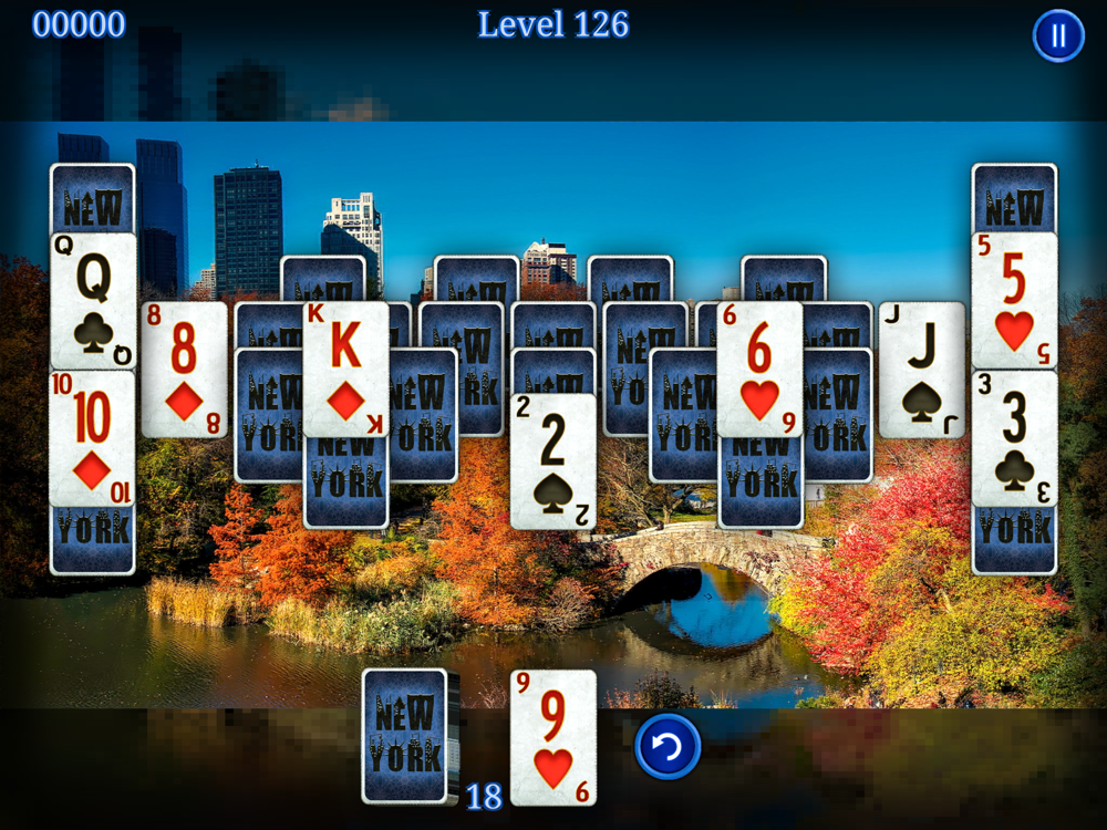 Solitaire card game with beautiful pictures of New York City in the backgrounds.
