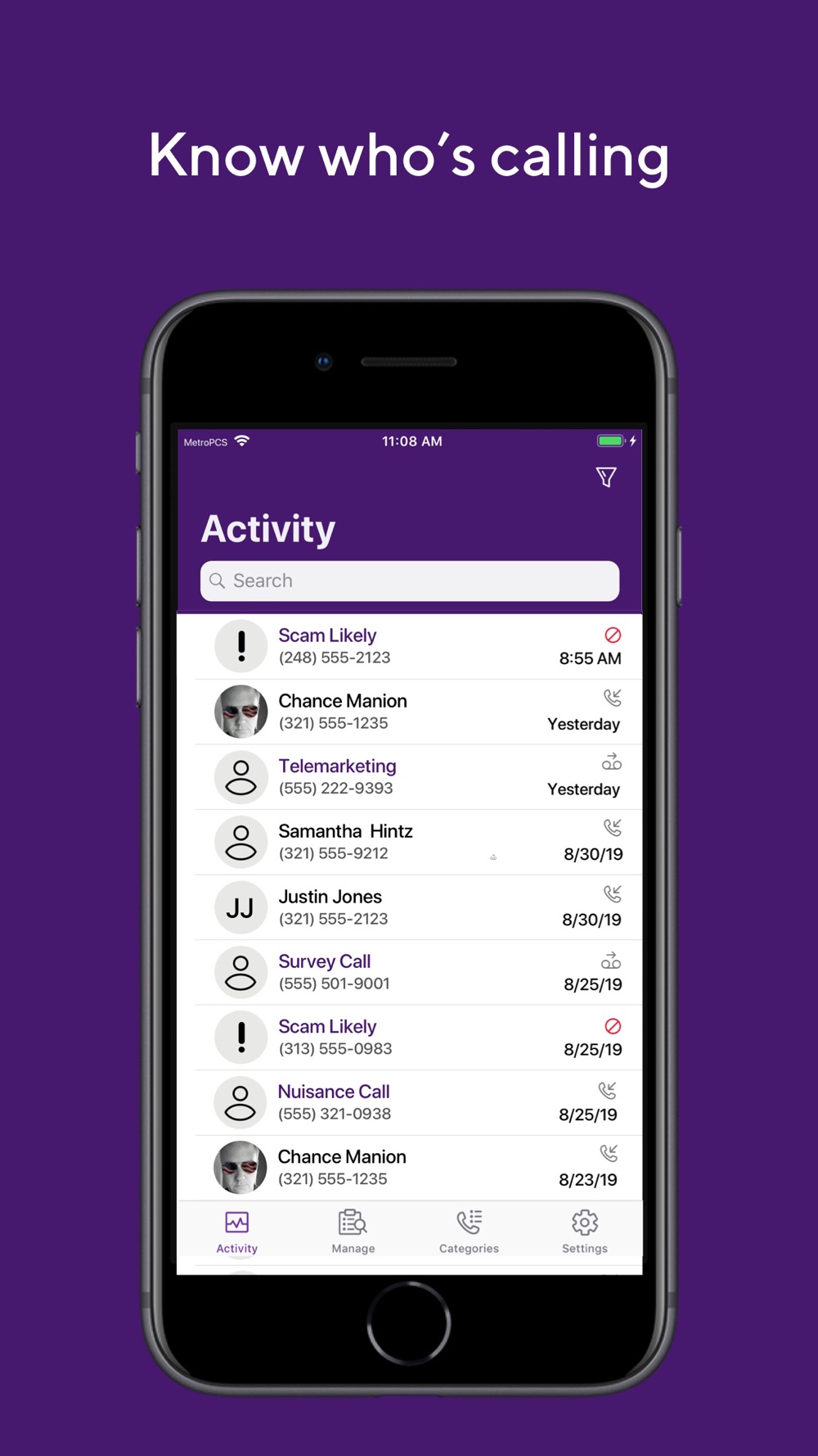 With Metro Name ID, you can block unwanted calls from scammers, telemarketers, political groups, and more questionable callers, and block or manage any phone number. Name ID also identifies callers—even if they’re not in your address book—letting you choose who you talk to. Reverse number lookup is included as well, so you’ll never have to wonder who called you.