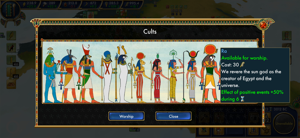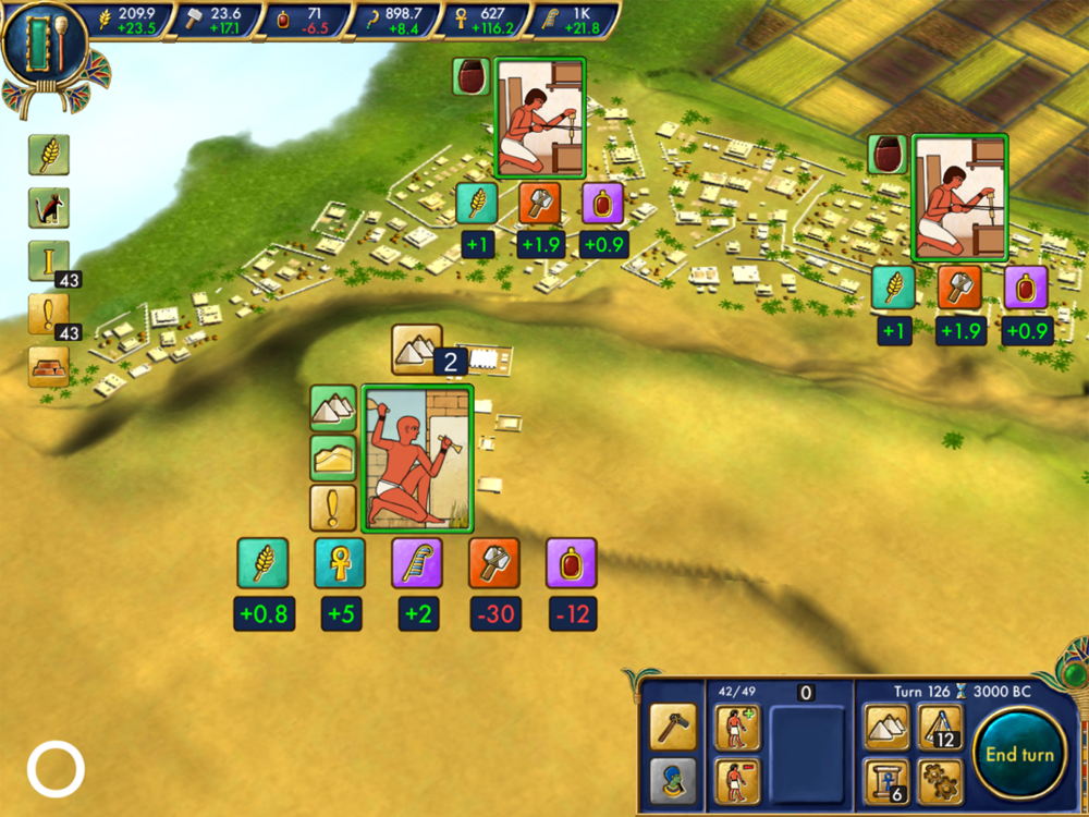 Discover the world of the Old Kingdom: exploit new lands, send expeditions to different places, and meet different cultures. Use every opportunity to learn about your surroundings and to expand Egypt's borders.