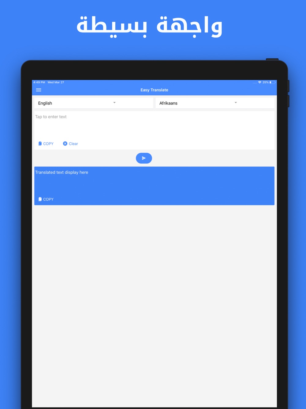 الترجمة الفورية لكل اللغات : جميع اللغات هو تطبيق يمكن المستخدم العادي او المحترف من ترجمة النصوص لجميع اللغات و بطريقة سريعة ومبسطة