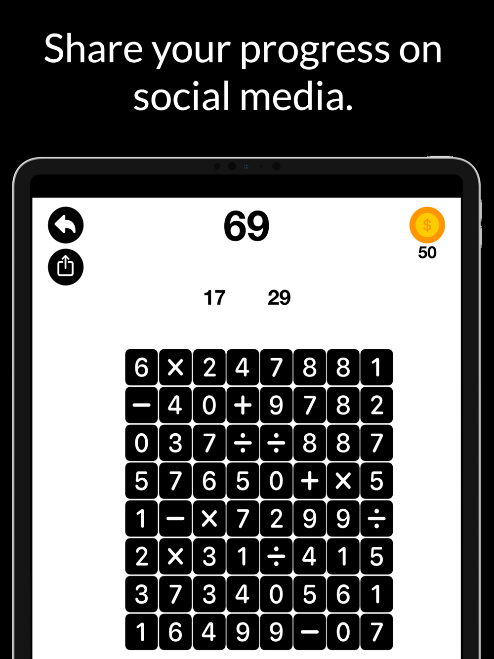 In this game, you'll be presented with a grid of numbers and mathematical symbols to search or find the number. If you can't find the number, you need to combine or solve it using the scramble numbers and mathematical symbols.