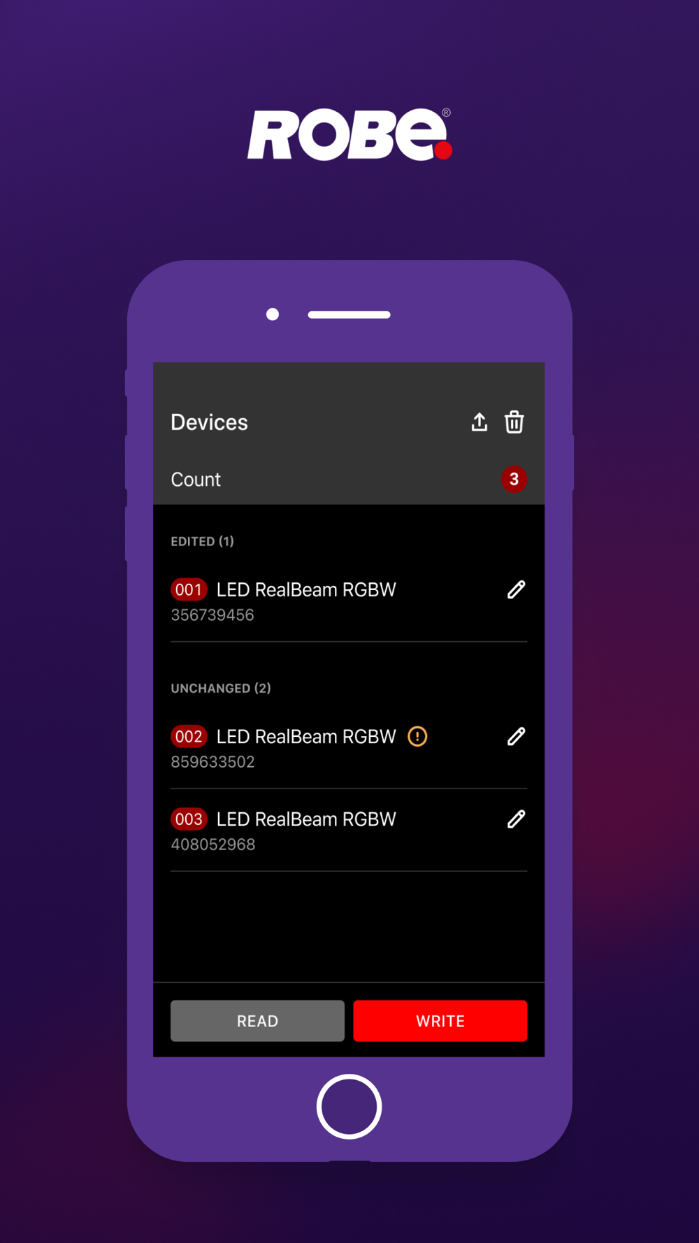 ROBE COM is an app that allows you to communicate with the ROBE units - read parameters using NFC tags such a fixture information, personality and DMX/RDM/Ethernet settings.