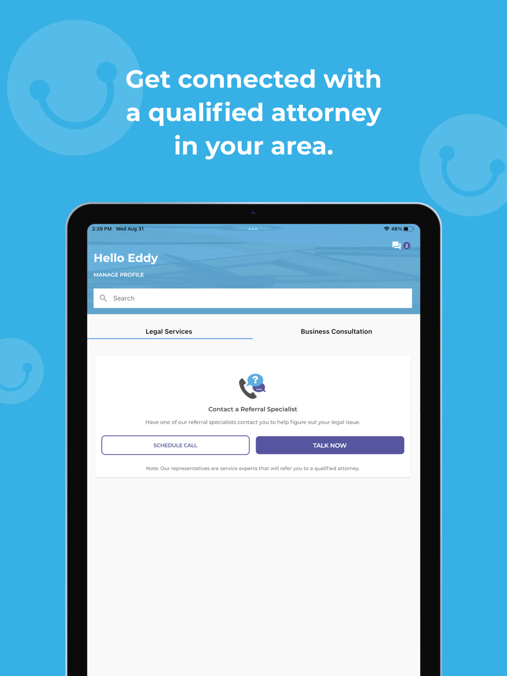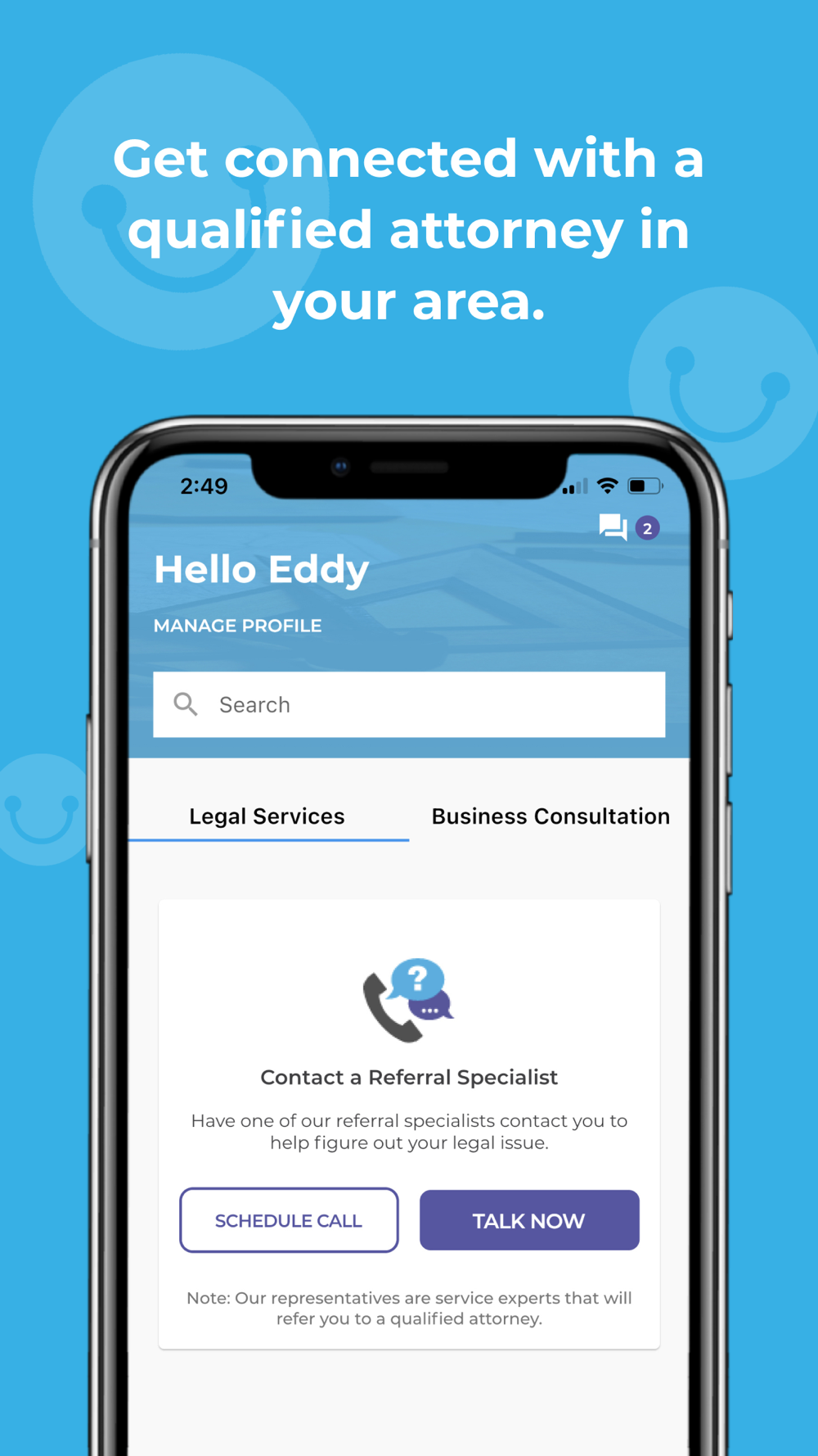 • Set up a call with a legal referral specialist now or at a convenient future time
