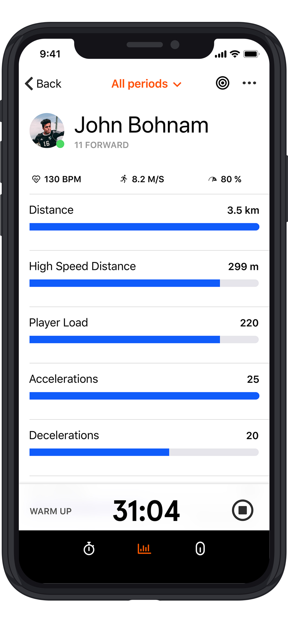 Users will be able to receive live performance information from small groups of athletes via bluetooth. The Vector App is perfect for 1 to 1 training or rehab training scenarios. It allows a quick view into live Athlete performance data without the need to set up any additional equipment.