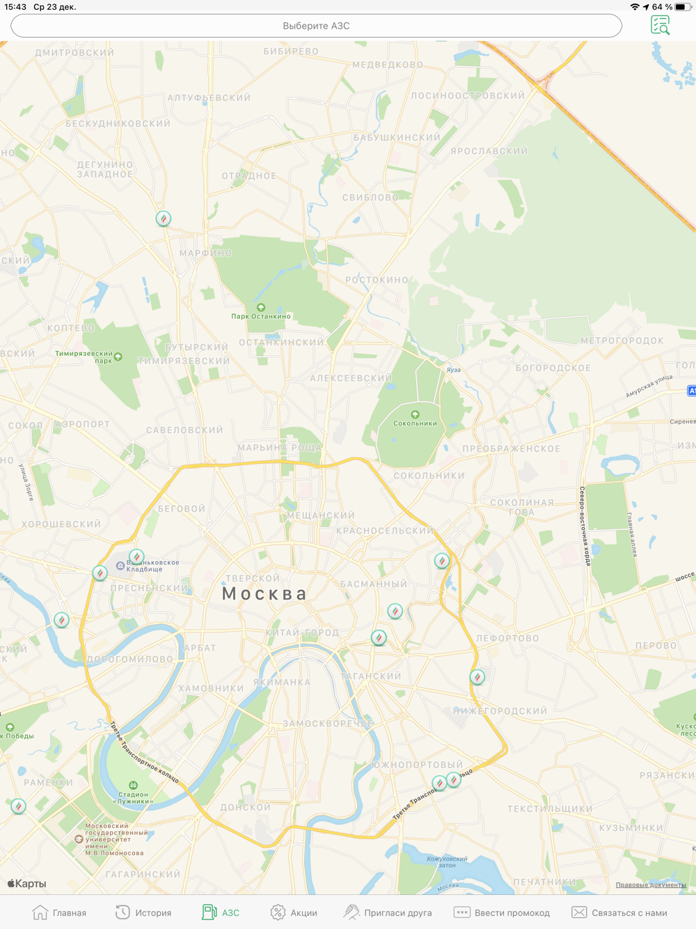 • получать информацию о реализуемых видах топлива, ценах и услугах на станциях;