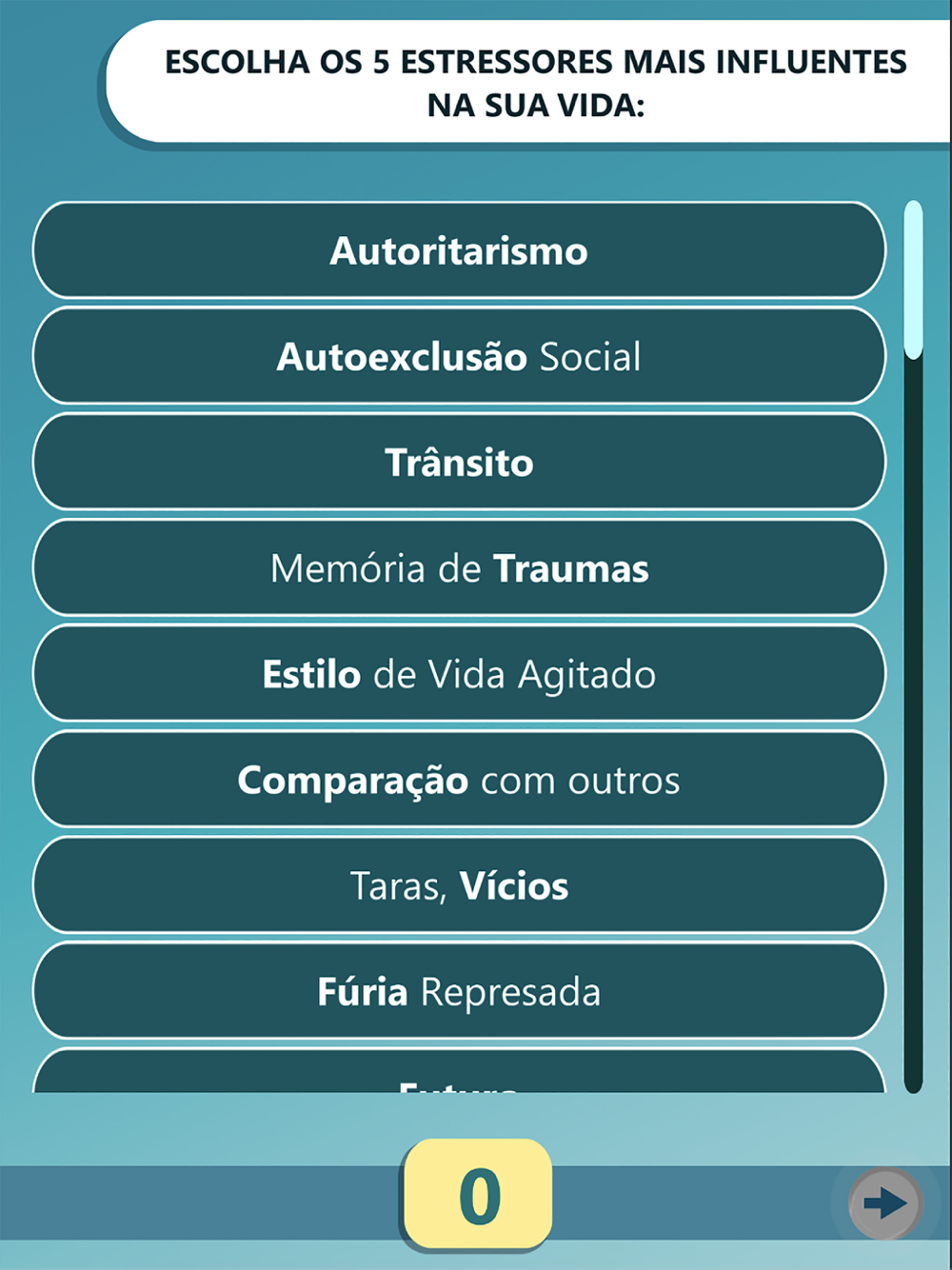 O resultado desse exercício, executado ludicamente movimentando ícones na tela do celular ou tablet, identifica 1) estressores muito influentes sobre os quais a pessoa tem influência; e 2) estressores muito influentes sobre os quais a pessoa carece de influência.