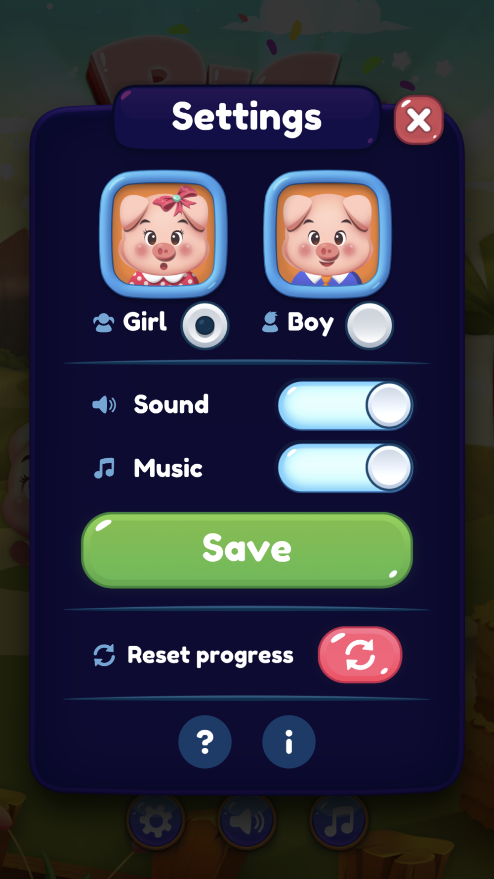 With so many enjoyable levels, unique features and boosters, Pigs Puzzle Match is a must-have game on your iOS device. Play now for free and enjoy loads of challenging levels! Swipe and match 2 or more adjacent cubes to complete missions and clear levels. Create powerful combos to get awesome gifts and to explode all the cute pigs blocks.
