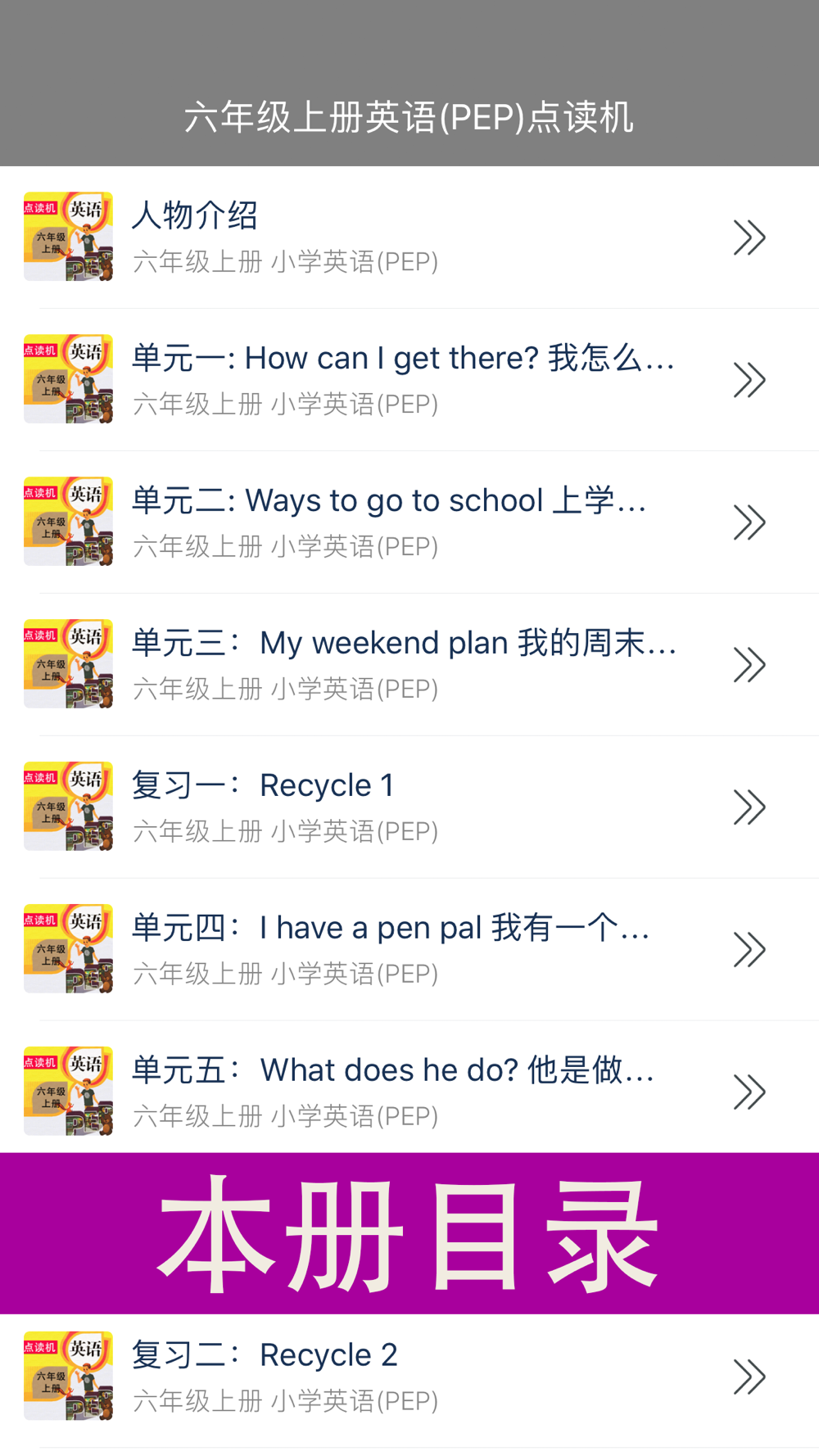 完全同步教材全程语音,使用时请配合打开相应的课本教材。