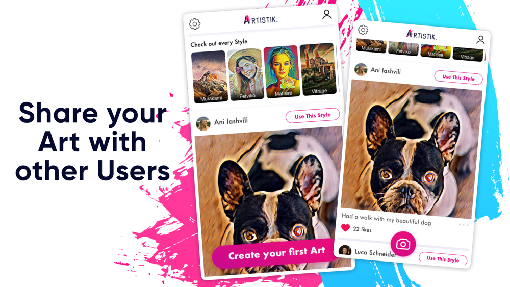 Artistik uses complex artificial intelligence algorithms and recreates your photo with the strong style from famous artists' masterpieces.